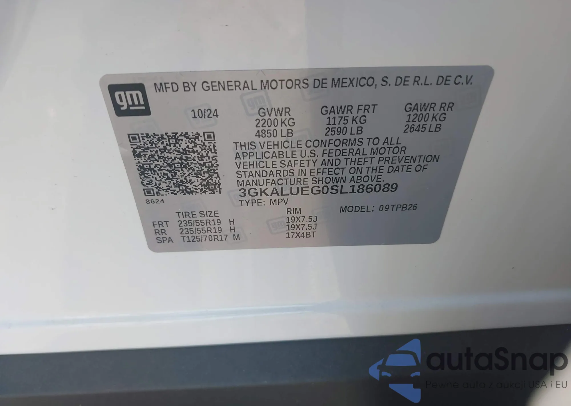 VIN: 3GKALUEG0SL186089