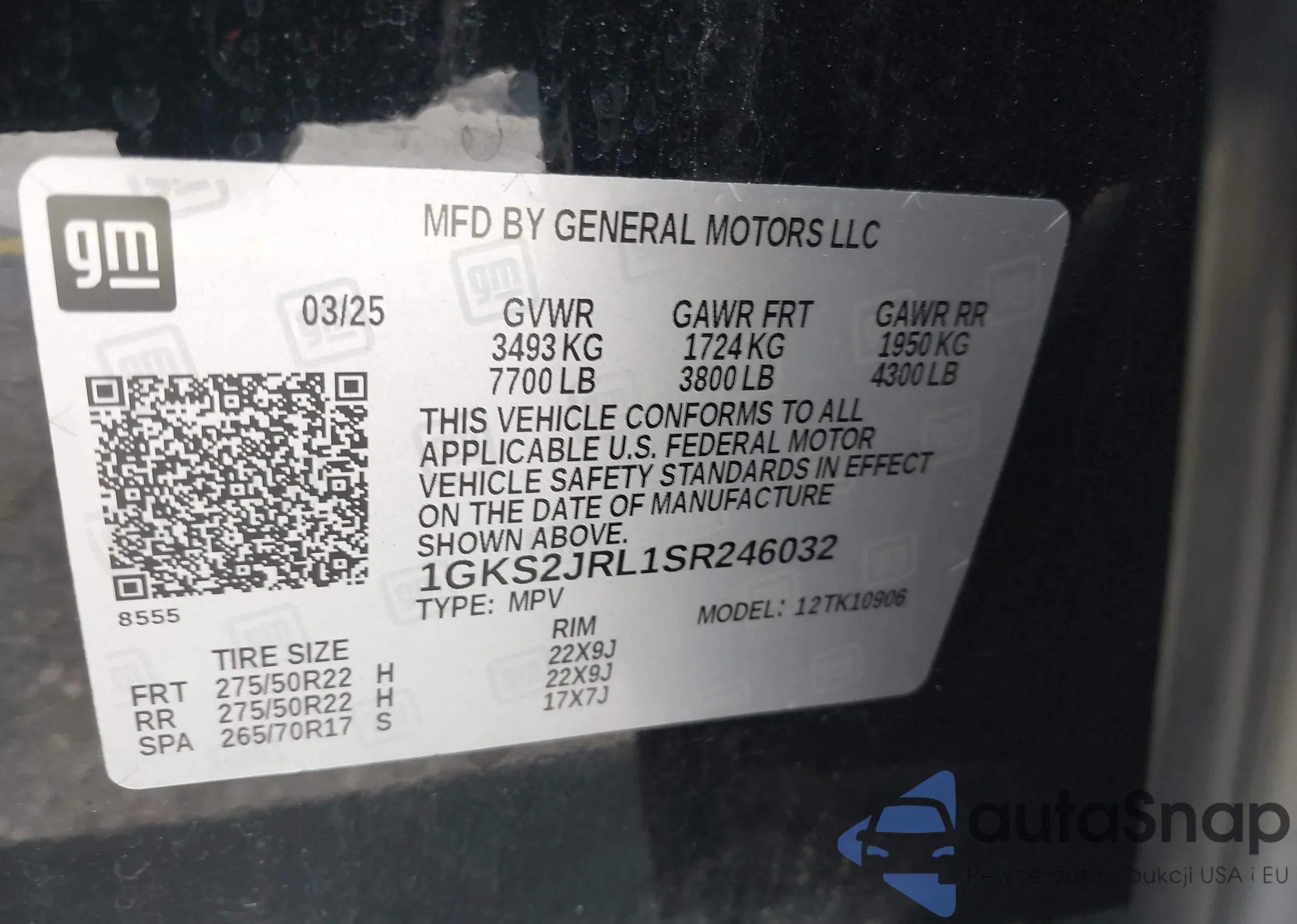 Автомобиль GMC Yukon 2025 (VIN 1GKS2JRL1SR246032) имеет документы, препятствующие регистрации. Могут возникнуть сложности при экспорте и регистрации. Обратитесь к экспертам AutaSnap для поиска альтернатив.