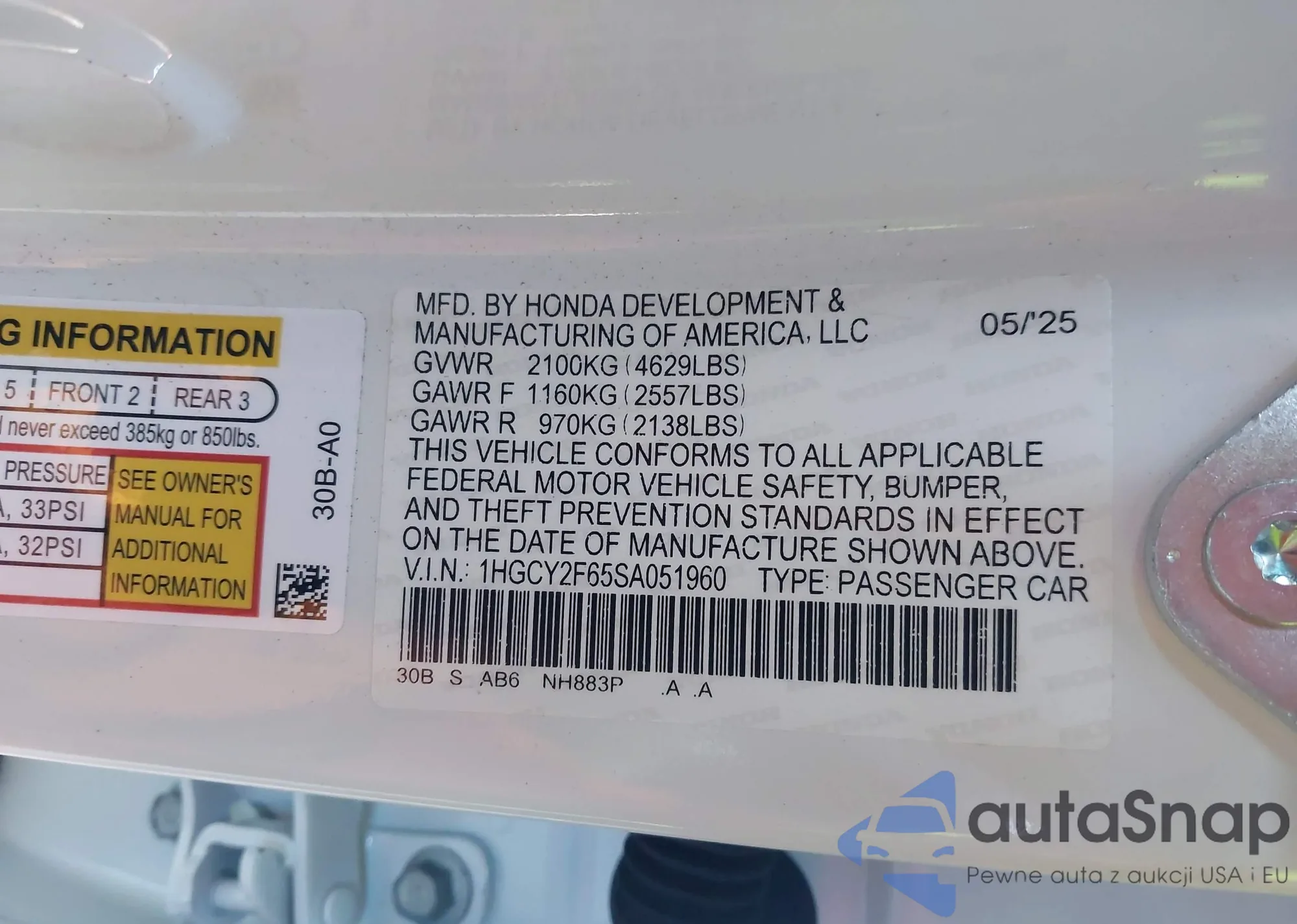 VIN: 1HGCY2F65SA051960