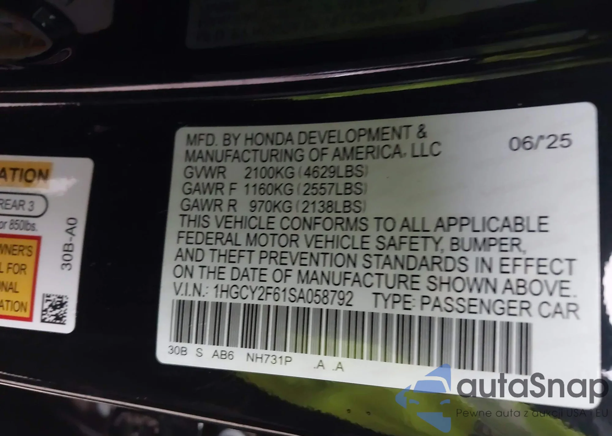 VIN: 1HGCY2F61SA058792