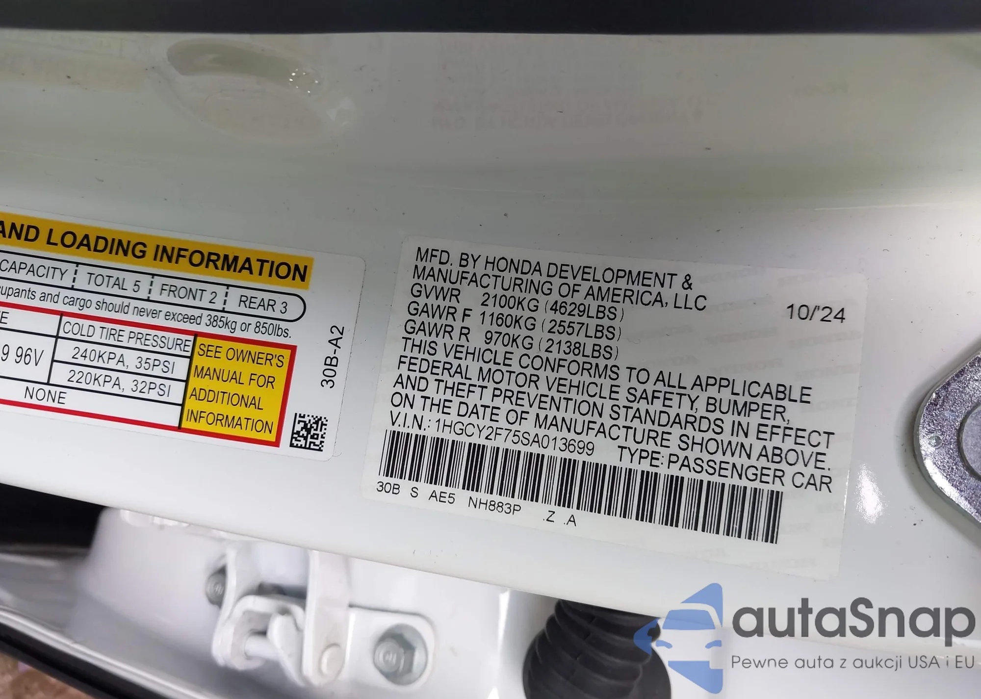 VIN: 1HGCY2F75SA013699