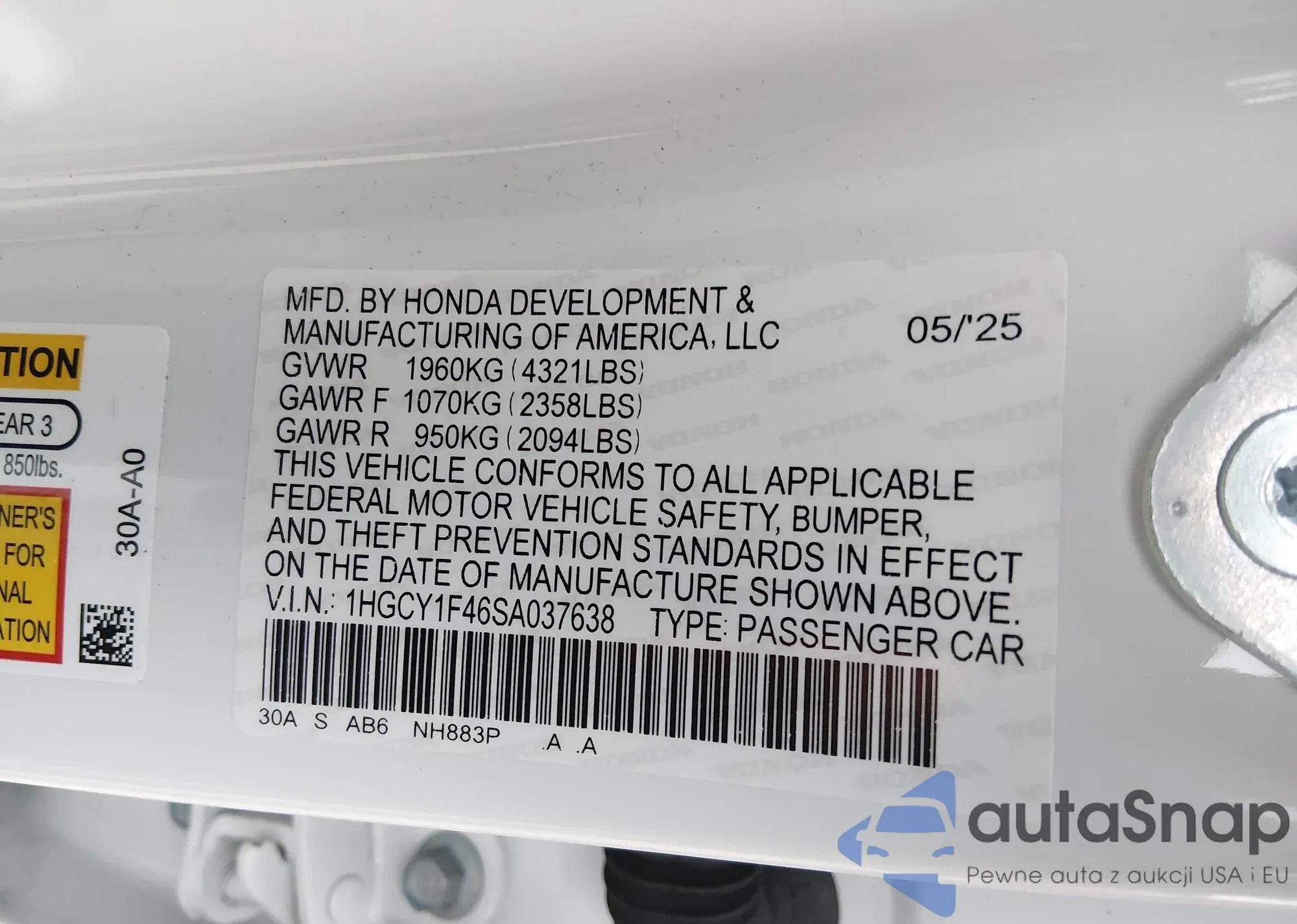 VIN: 1HGCY1F46SA037638