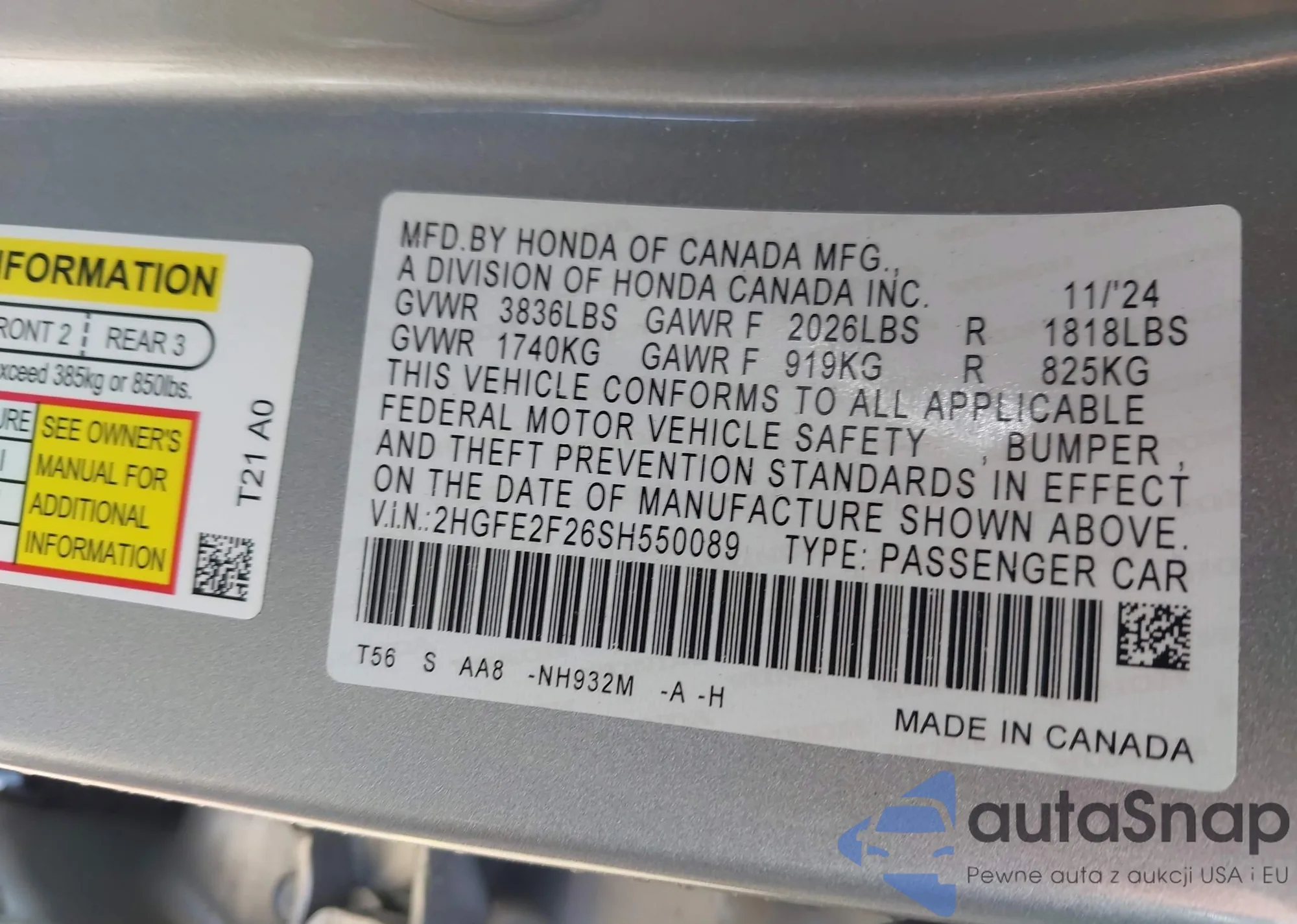 VIN: 2HGFE2F26SH550089