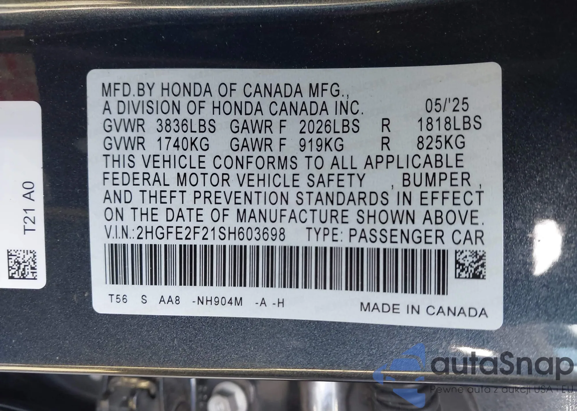 Автомобиль Honda Civic 2025 (VIN 2HGFE2F21SH603698) ранее не участвовал в торгах. Документы чистые, пробег соответствует или ниже среднего по рынку. Продаётся страховой компанией — рекомендуем покупку. Доставка в порт займет около 6–8 недель.