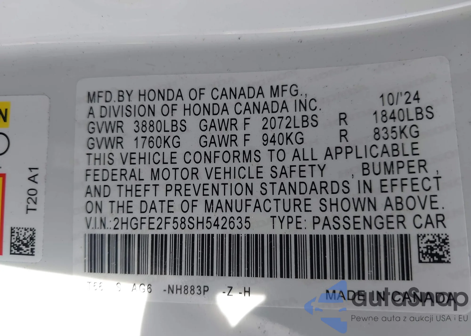 VIN: 2HGFE2F58SH542635