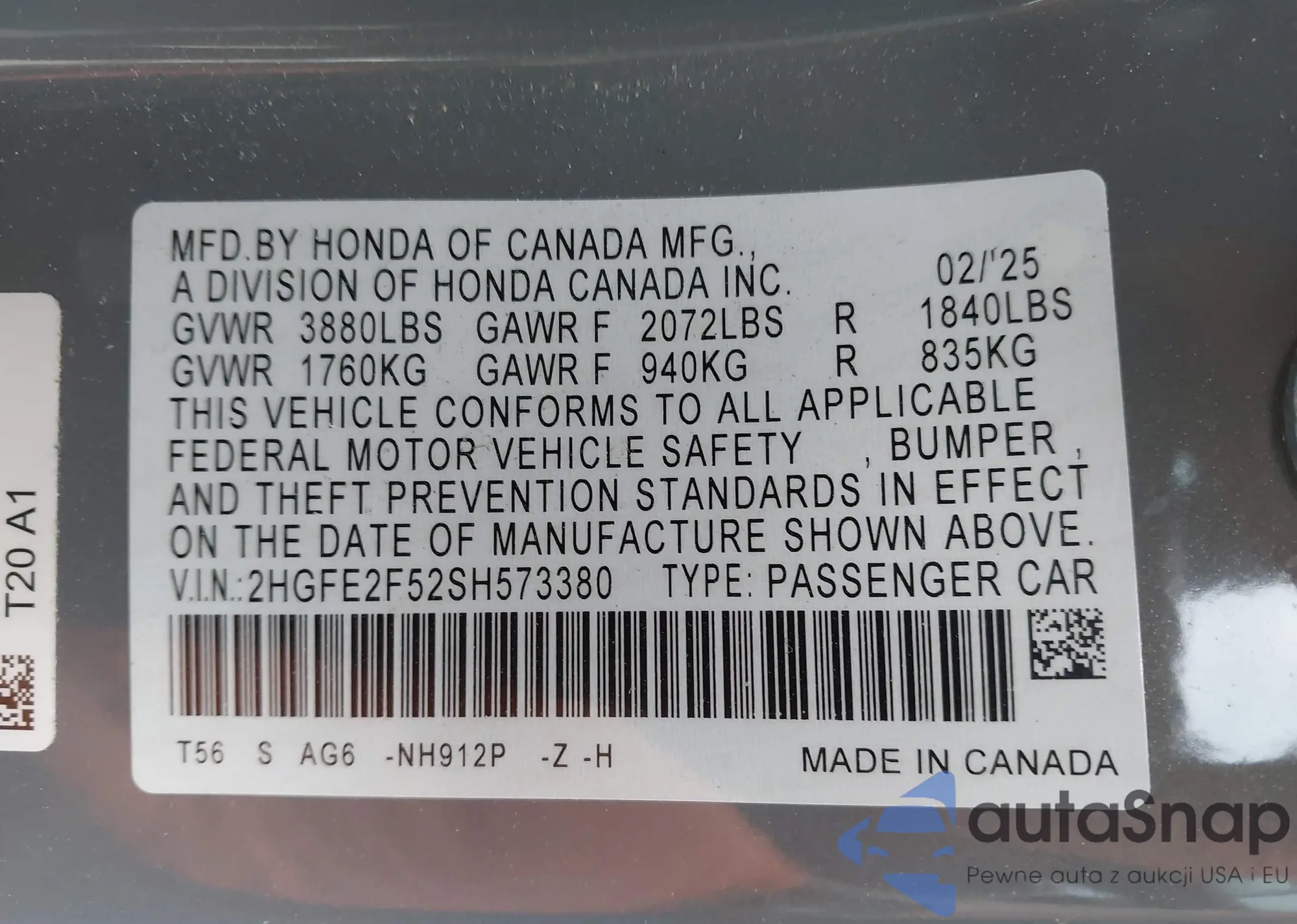 VIN: 2HGFE2F52SH573380