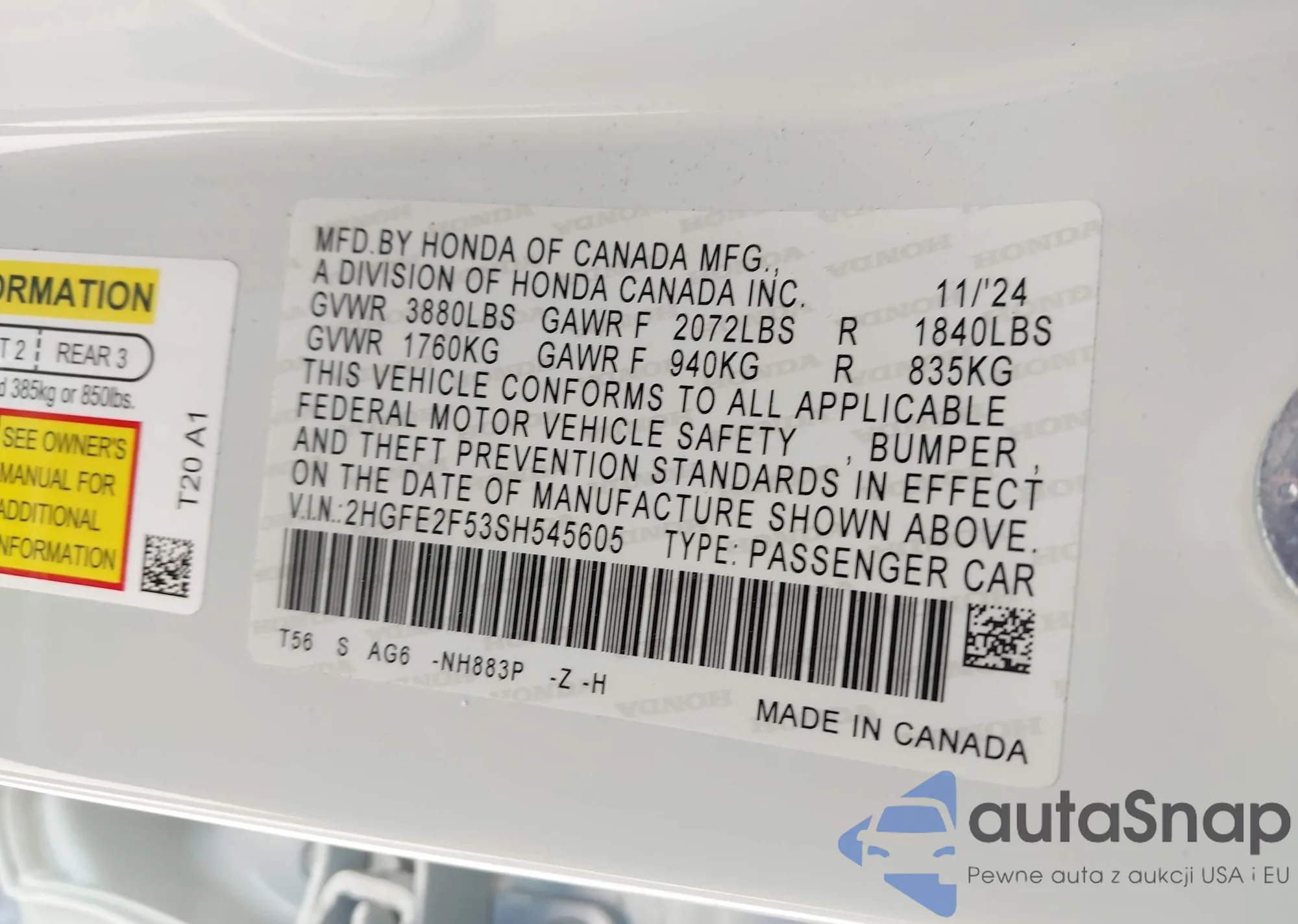 VIN: 2HGFE2F53SH545605