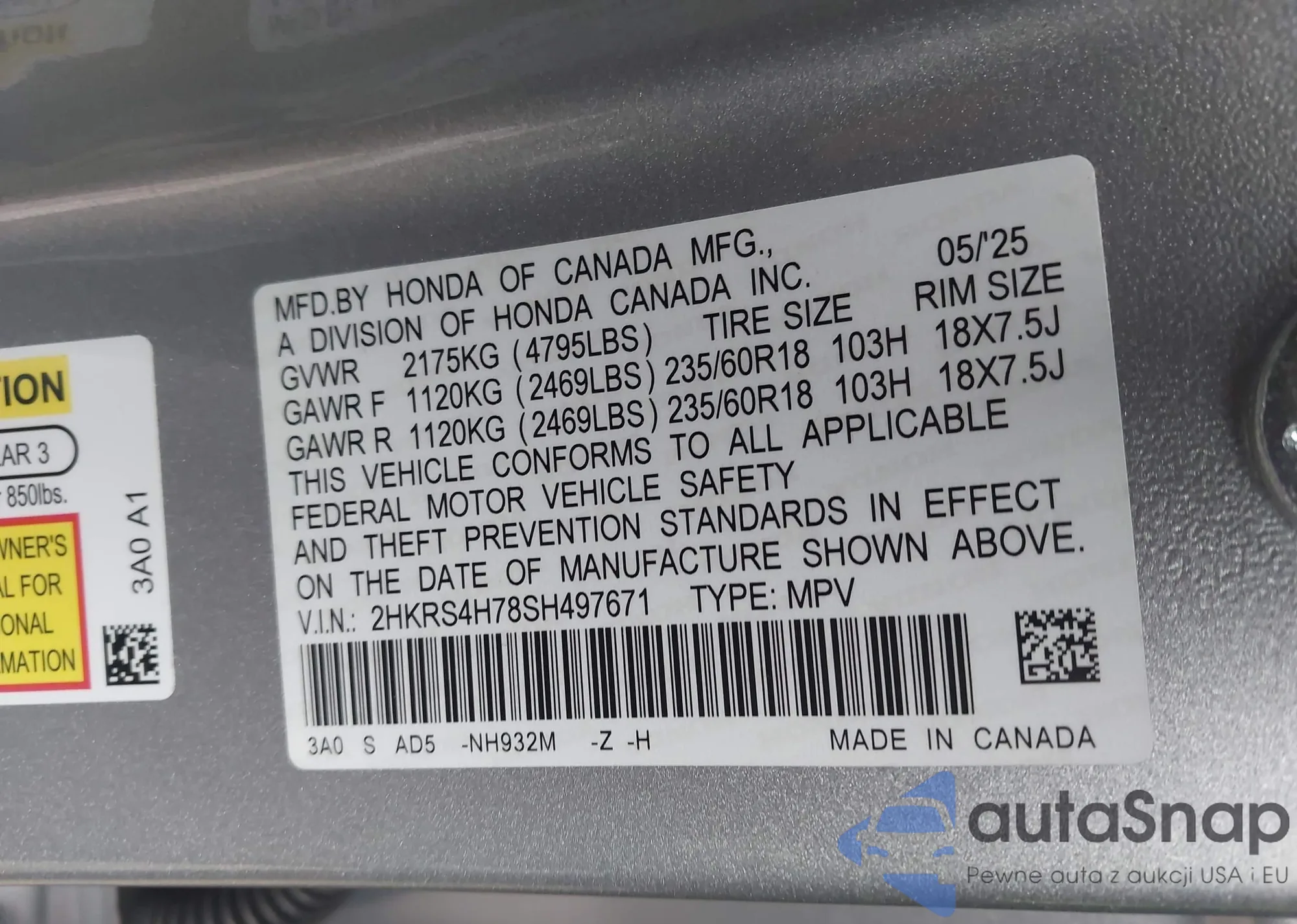 VIN: 2HKRS4H78SH497671