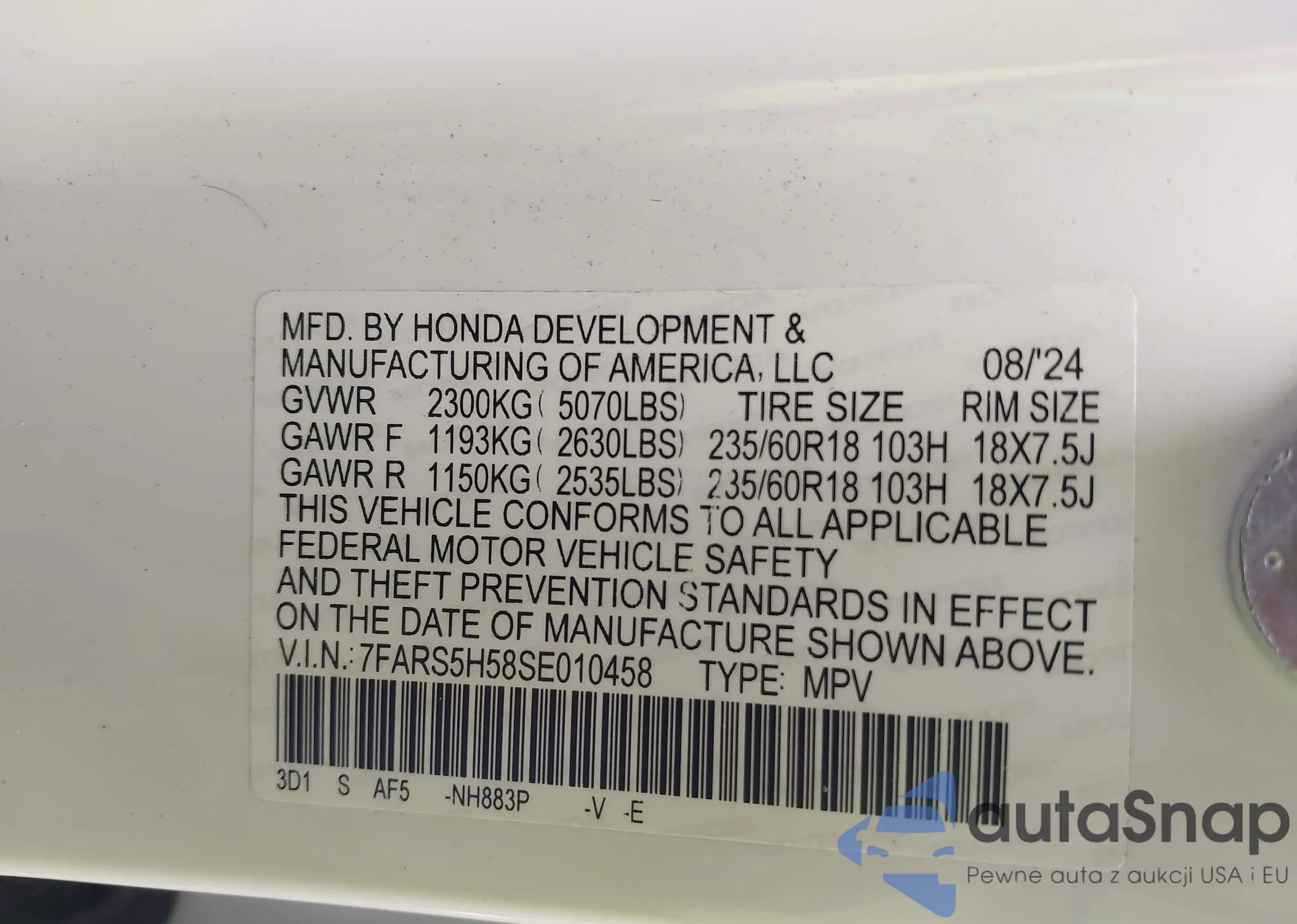 VIN: 7FARS5H58SE010458