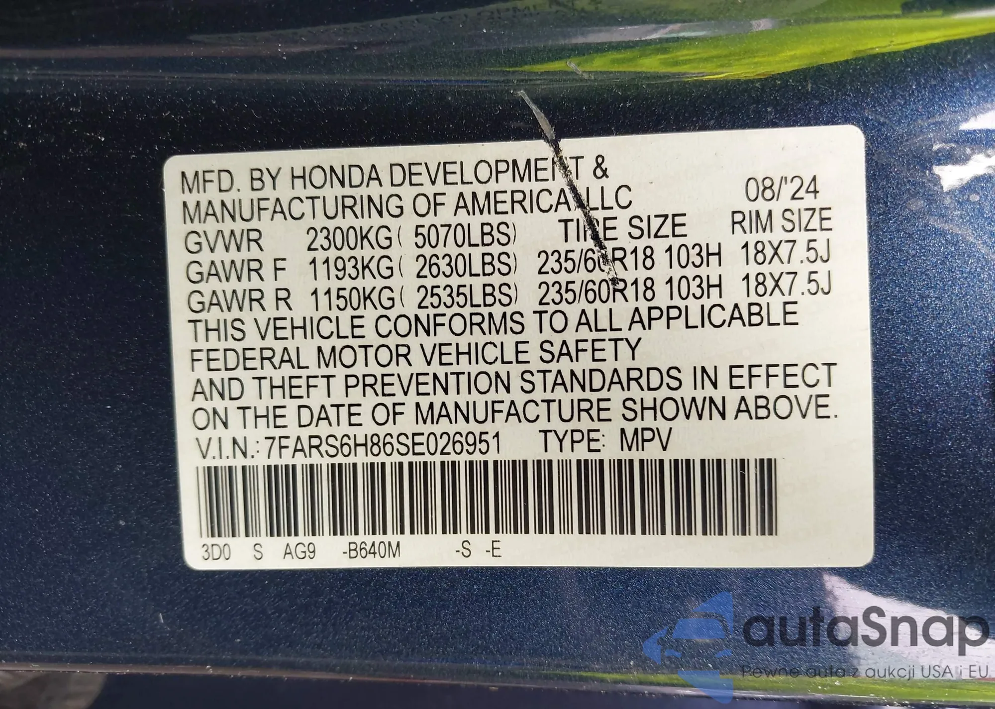 VIN: 7FARS6H86SE026951