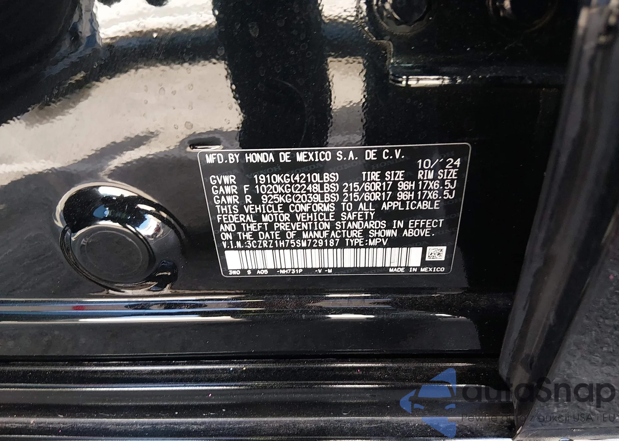 Автомобиль Honda HR-V 2025 (VIN 3CZRZ1H75SM729187) ранее не участвовал в торгах. Документы чистые, пробег соответствует или ниже среднего по рынку. Продаётся страховой компанией — рекомендуем покупку. Доставка в порт займет около 6–8 недель.
