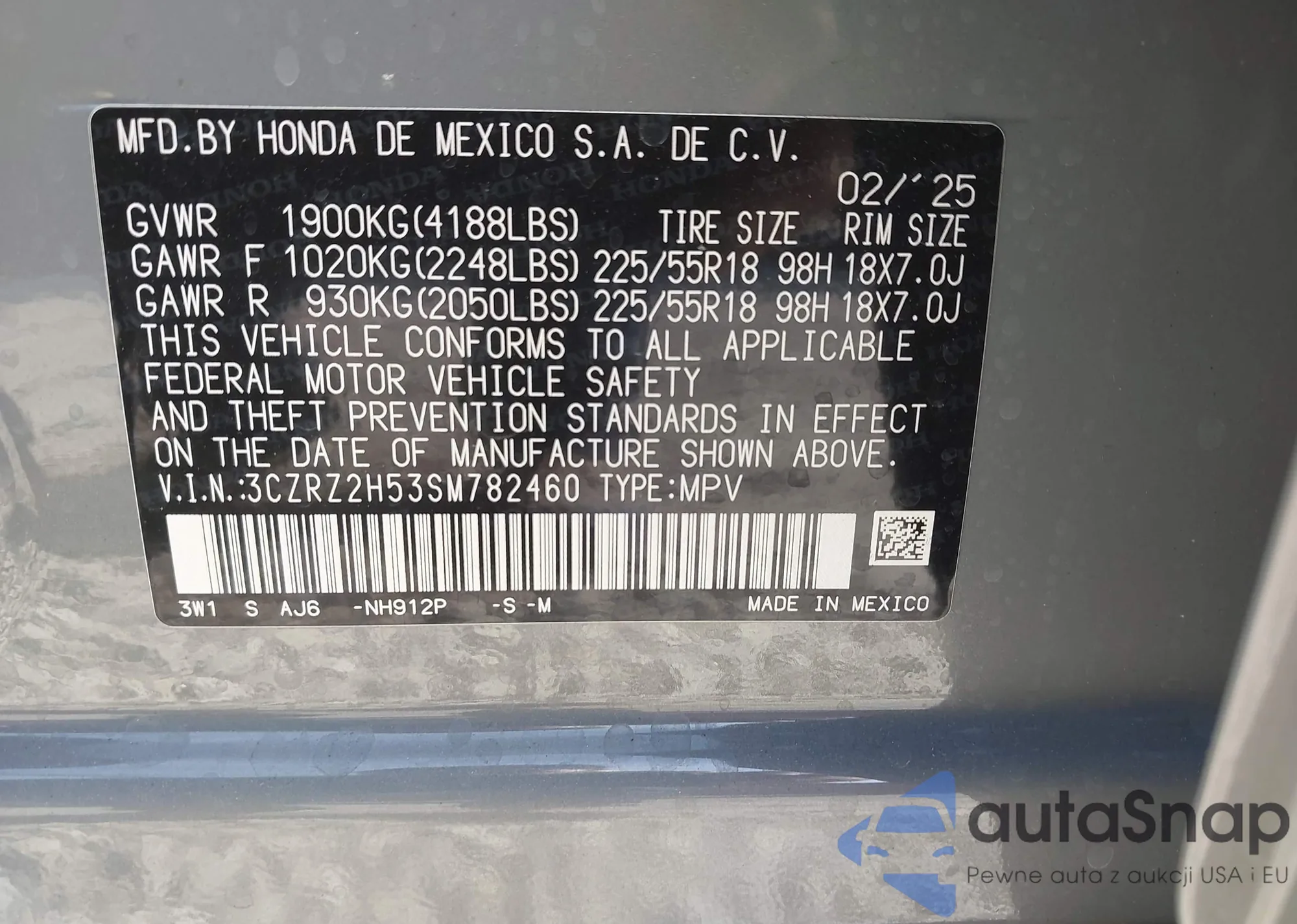 VIN: 3CZRZ2H53SM782460