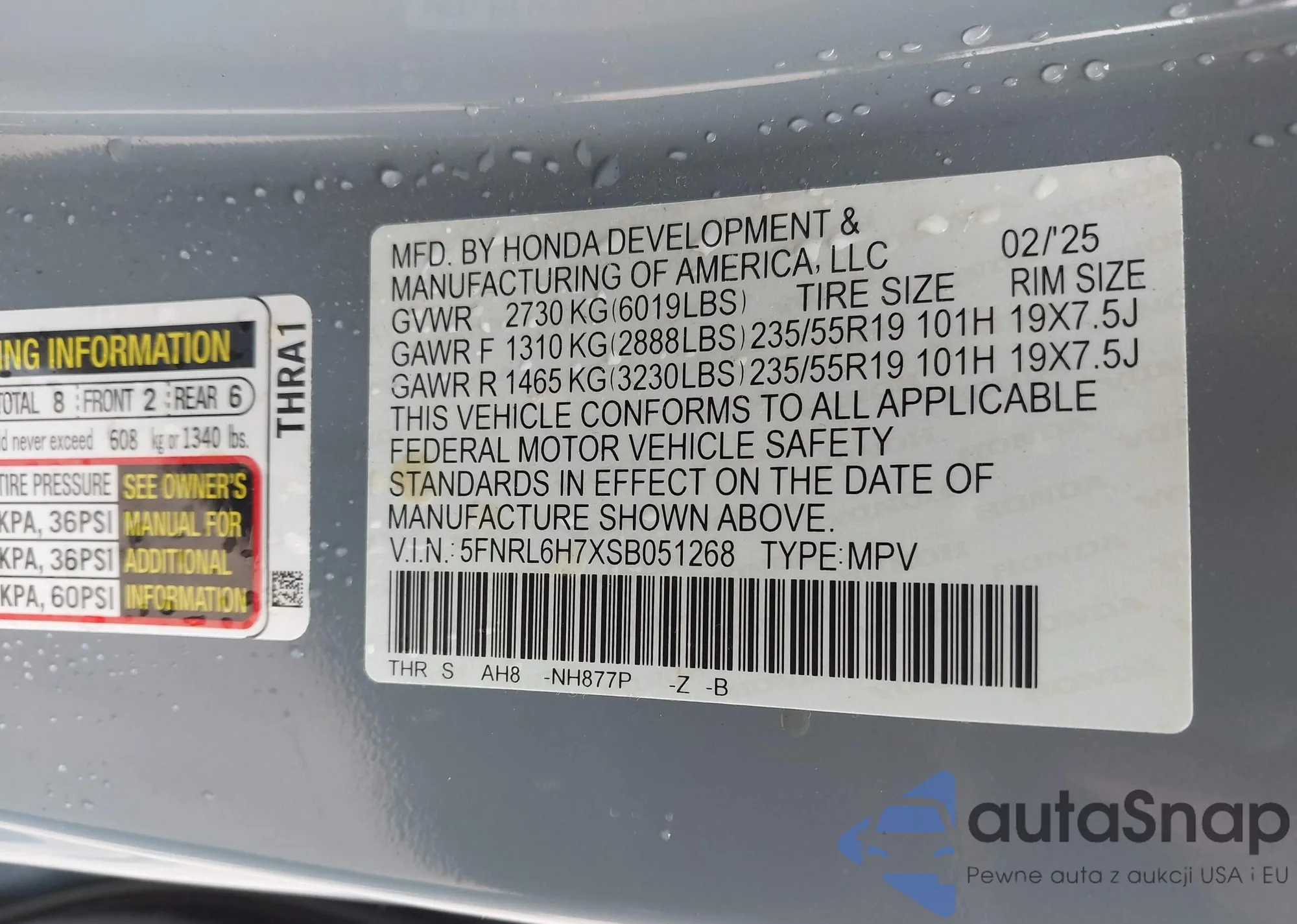 VIN: 5FNRL6H7XSB051268