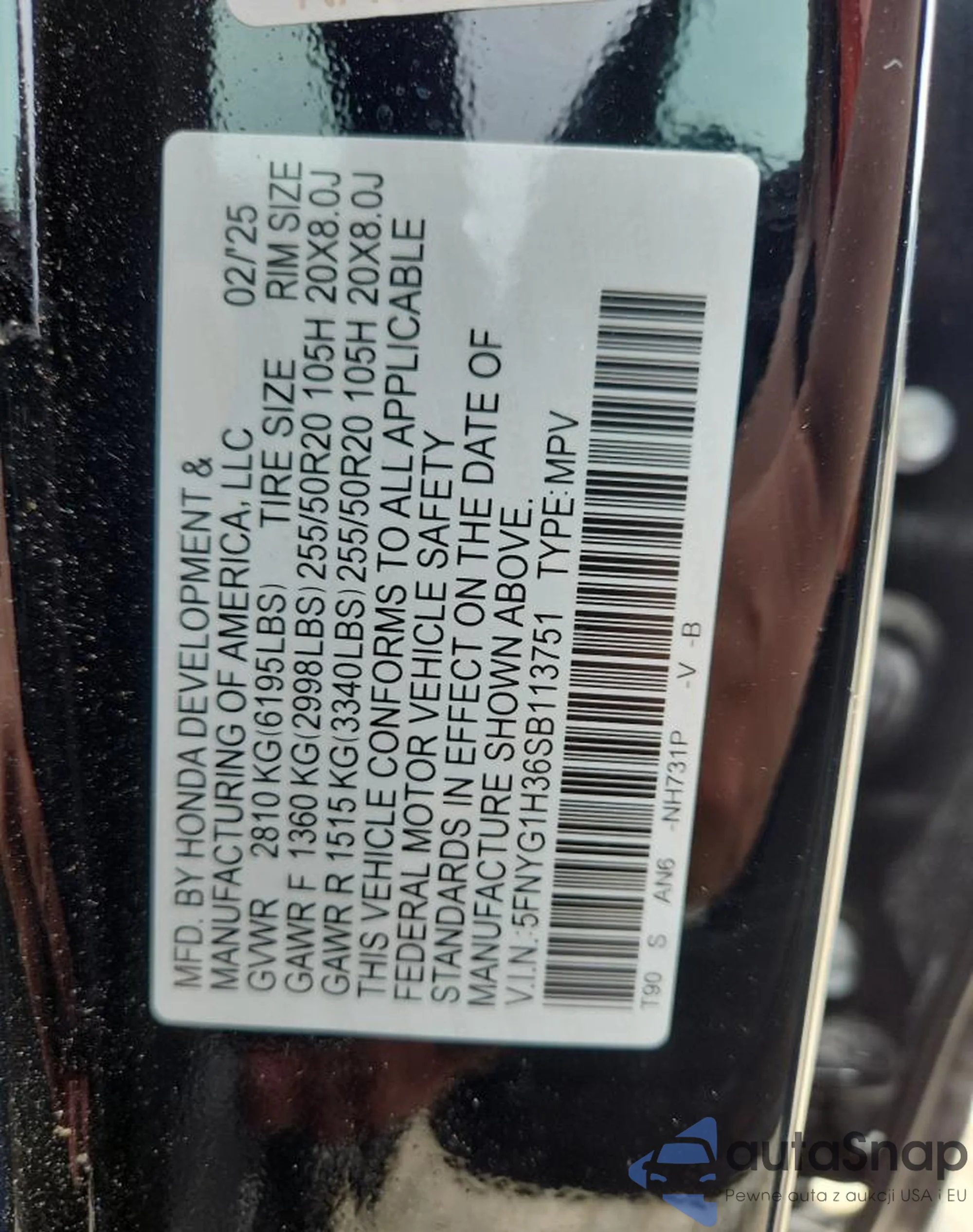VIN: 5FNYG1H36SB113751