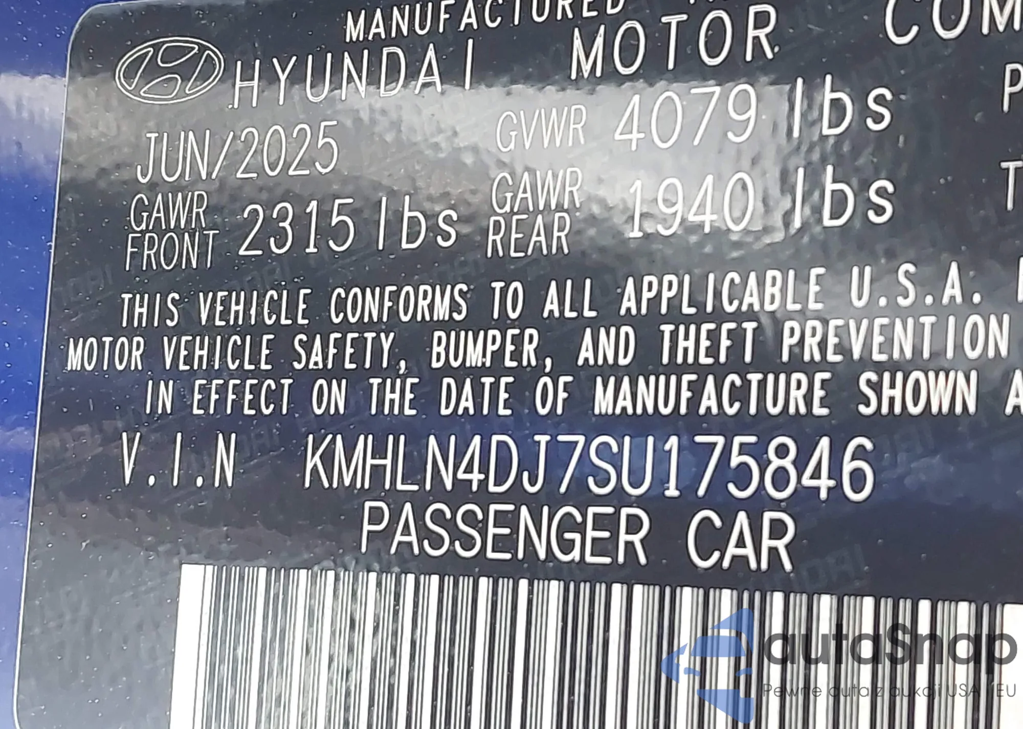 VIN: KMHLN4DJ7SU175846