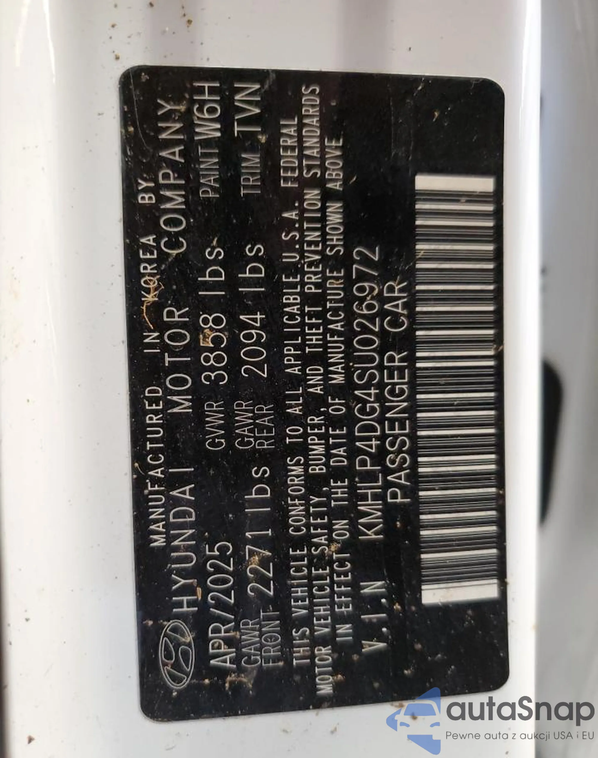 VIN: KMHLP4DG4SU026972