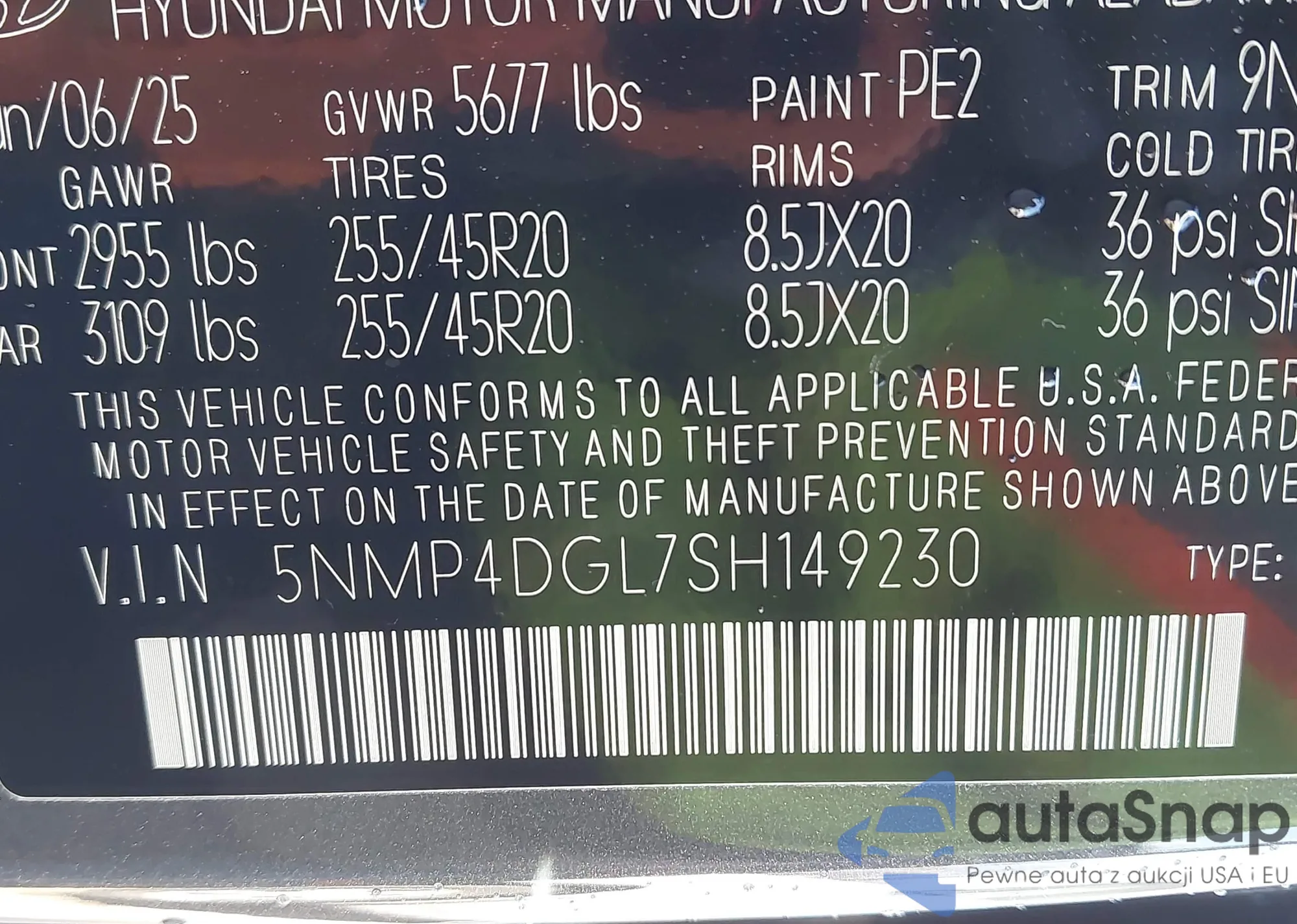 Автомобиль Hyundai Santa Fe 2025 (VIN 5NMP4DGL7SH149230) ранее не участвовал в торгах. Документы чистые, пробег соответствует или ниже среднего по рынку. Продаётся страховой компанией — рекомендуем покупку. Доставка в порт займет около 6–8 недель.