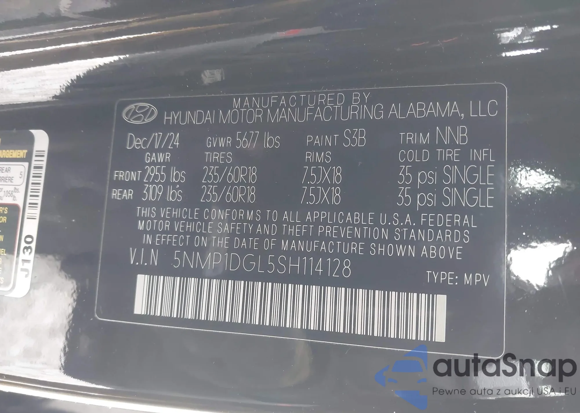 Автомобиль Hyundai Santa Fe 2025 (VIN 5NMP1DGL5SH114128) ранее не участвовал в торгах. Документы чистые, пробег соответствует или ниже среднего по рынку. Продаётся страховой компанией — рекомендуем покупку. Доставка в порт займет около 6–8 недель.