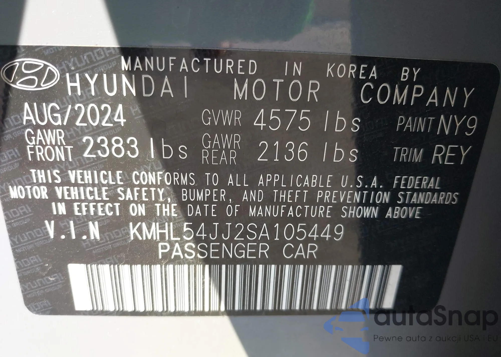 Автомобиль Hyundai Sonata 2025 (VIN KMHL54JJ2SA105449) ранее не участвовал в торгах. Документы чистые, пробег соответствует или ниже среднего по рынку. Продаётся страховой компанией — рекомендуем покупку. Доставка в порт займет около 6–8 недель.