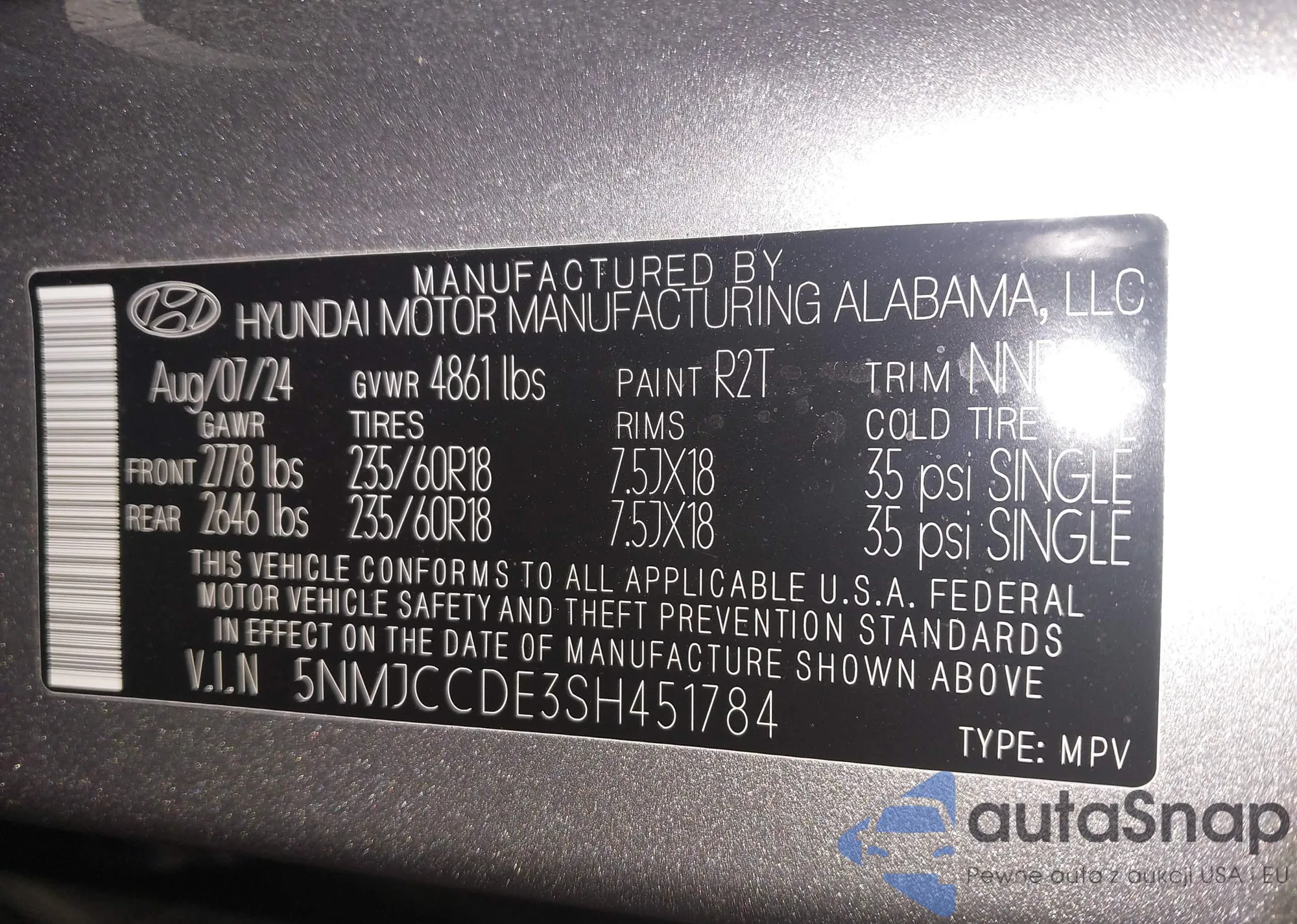 Автомобиль Hyundai Tucson 2025 (VIN 5NMJCCDE3SH451784) ранее не участвовал в торгах. Документы чистые, пробег соответствует или ниже среднего по рынку. Продаётся страховой компанией — рекомендуем покупку. Доставка в порт займет около 6–8 недель.