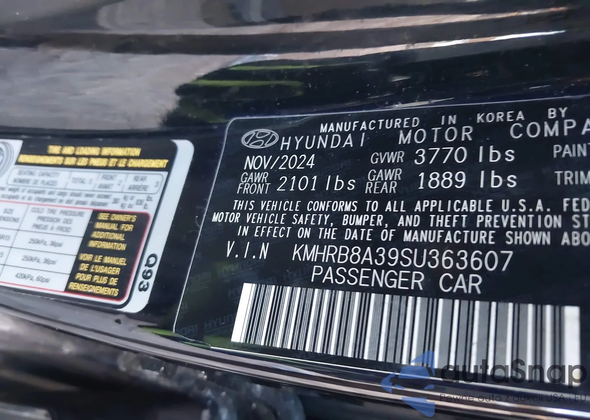• VIN: KMHRB8A39SU363607