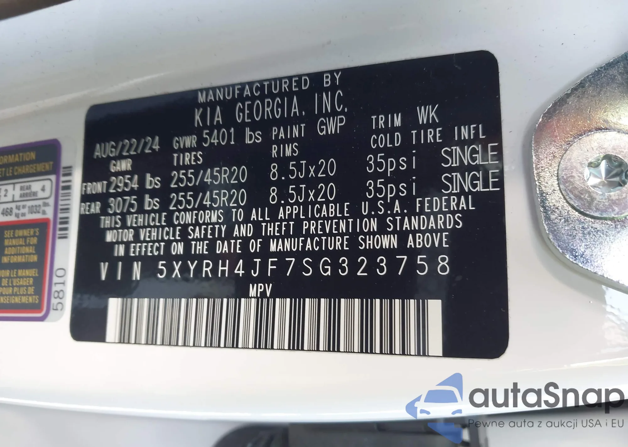 VIN: 5XYRH4JF7SG323758