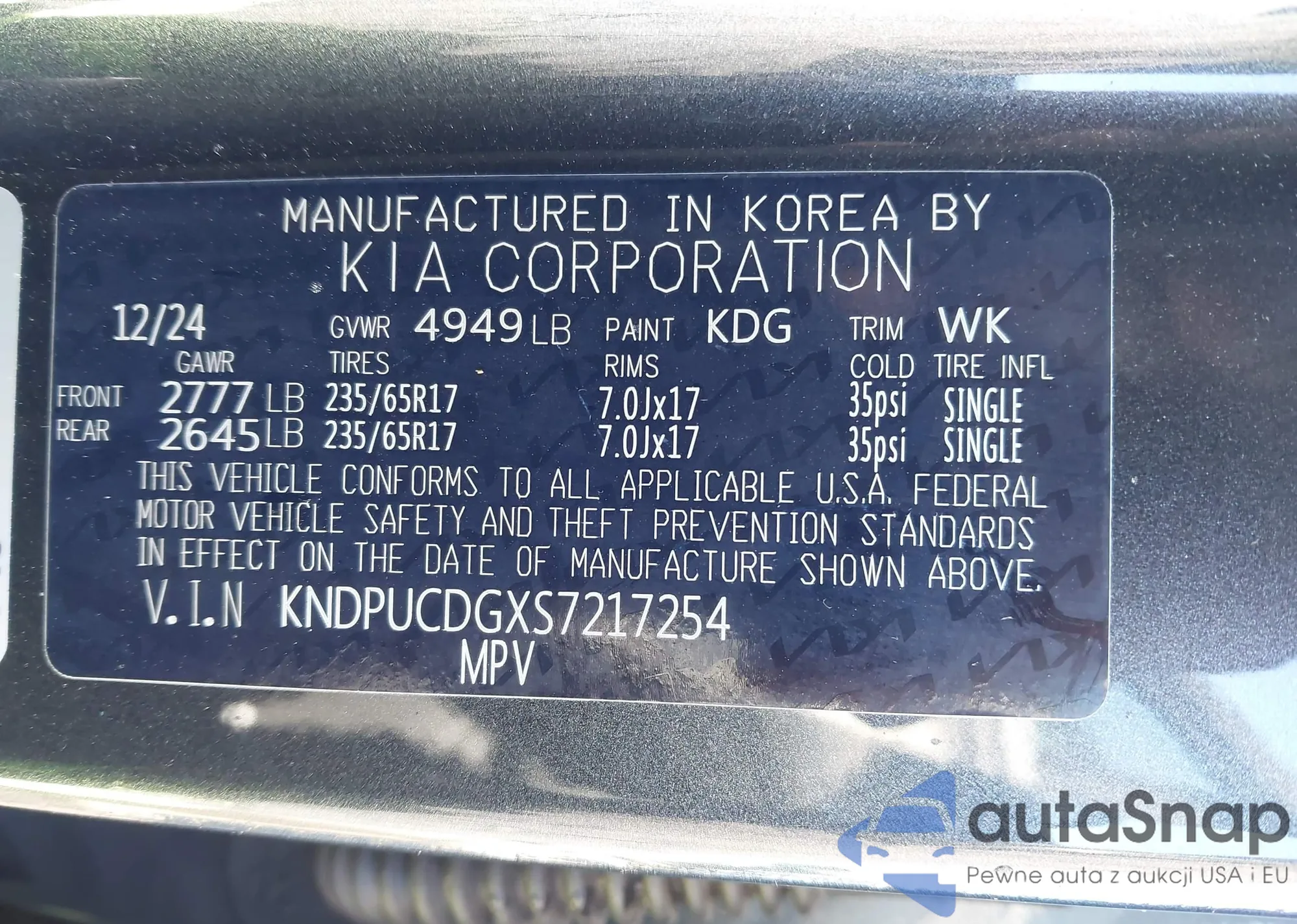 Автомобиль Kia Sportage 2025 (VIN KNDPUCDGXS7217254) ранее не участвовал в торгах. Документы чистые, пробег соответствует или ниже среднего по рынку. Продаётся страховой компанией — рекомендуем покупку. Доставка в порт займет около 6–8 недель.