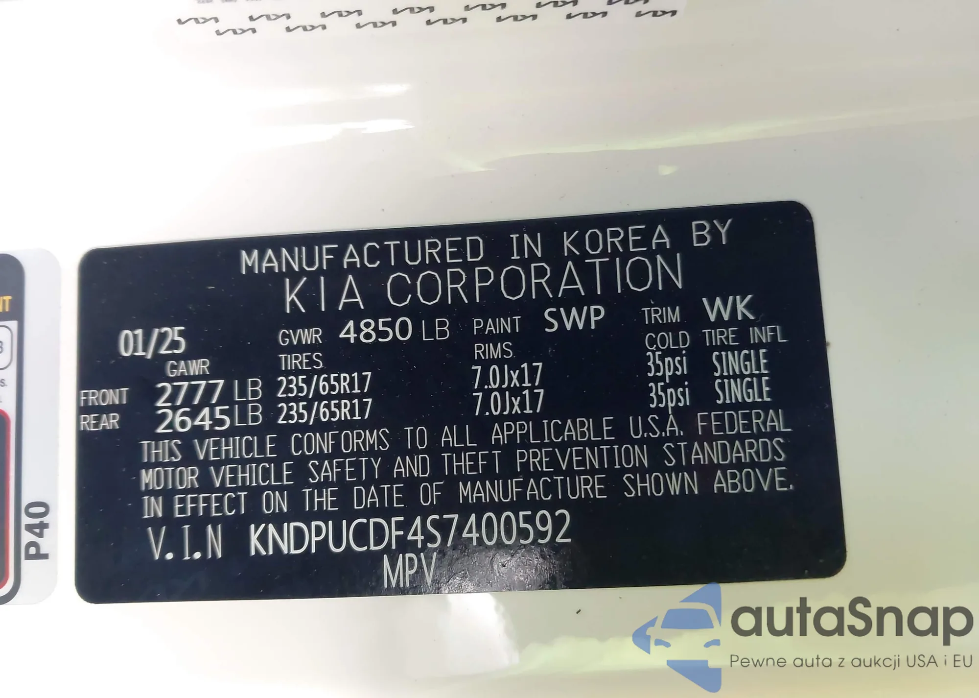 Автомобиль Kia Sportage 2025 (VIN KNDPUCDF4S7400592) ранее не участвовал в торгах. Документы чистые, пробег соответствует или ниже среднего по рынку. Продаётся страховой компанией — рекомендуем покупку. Доставка в порт займет около 6–8 недель.