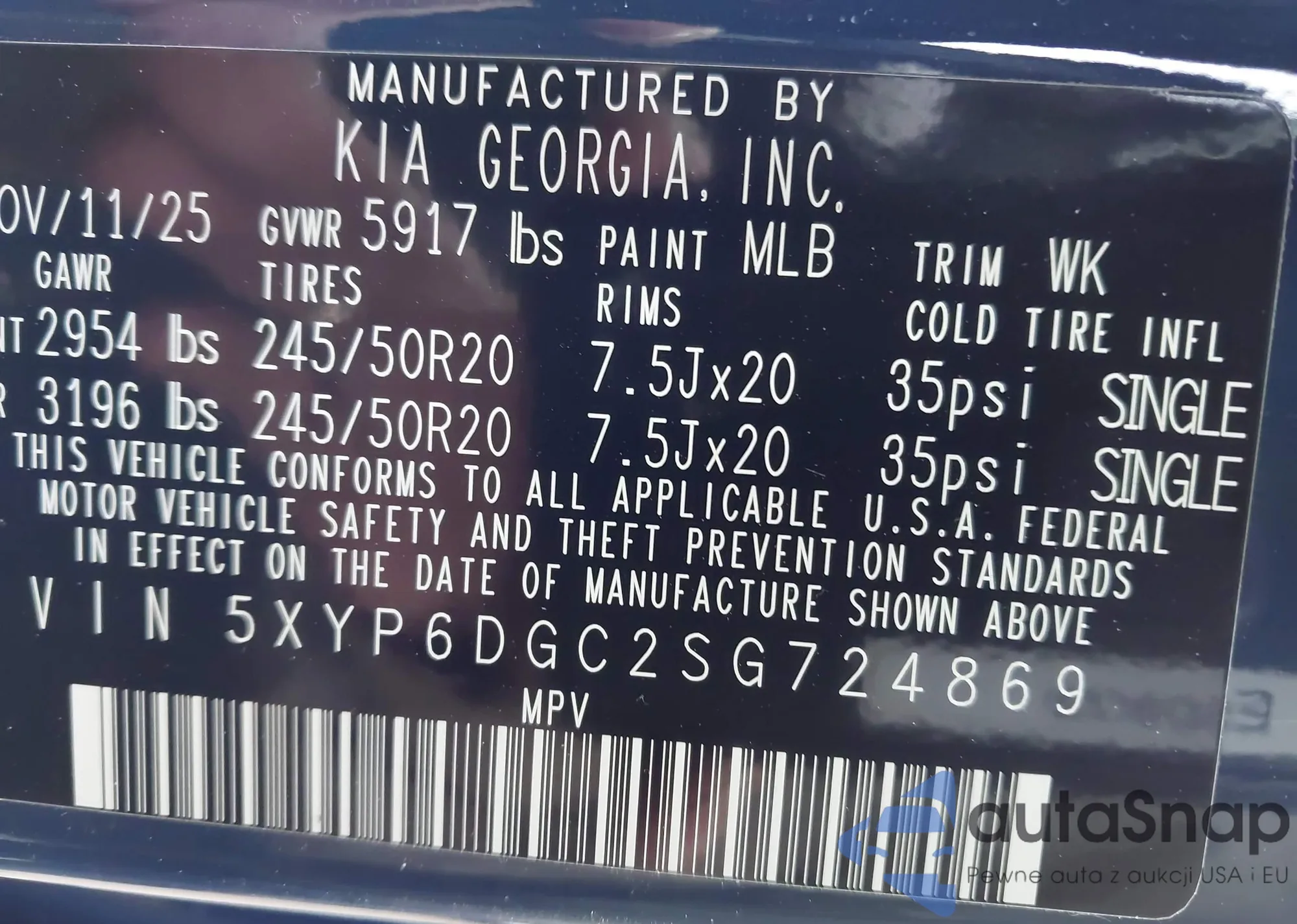 • VIN: 5XYP6DGC2SG724869