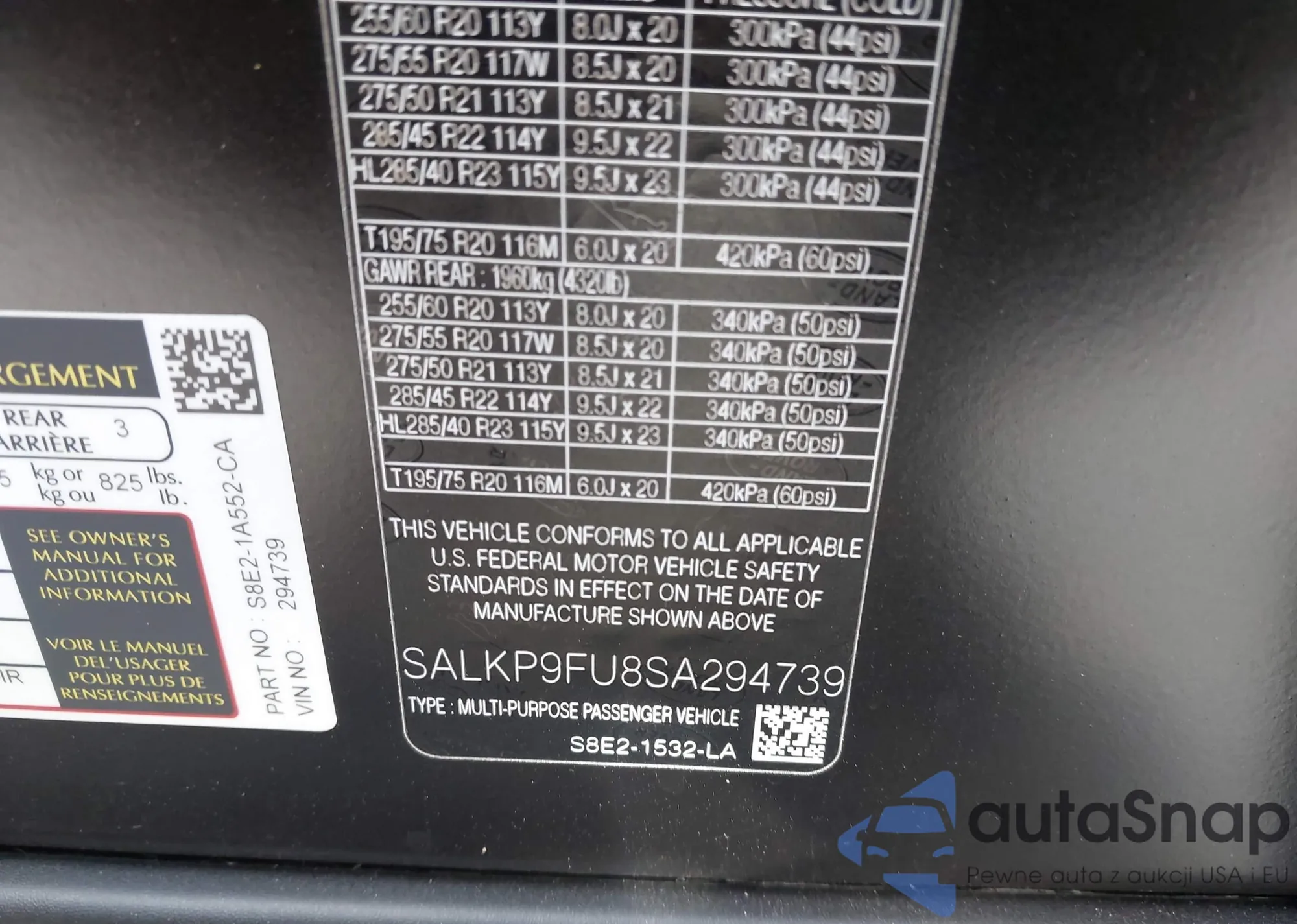 VIN: SALKP9FU8SA294739