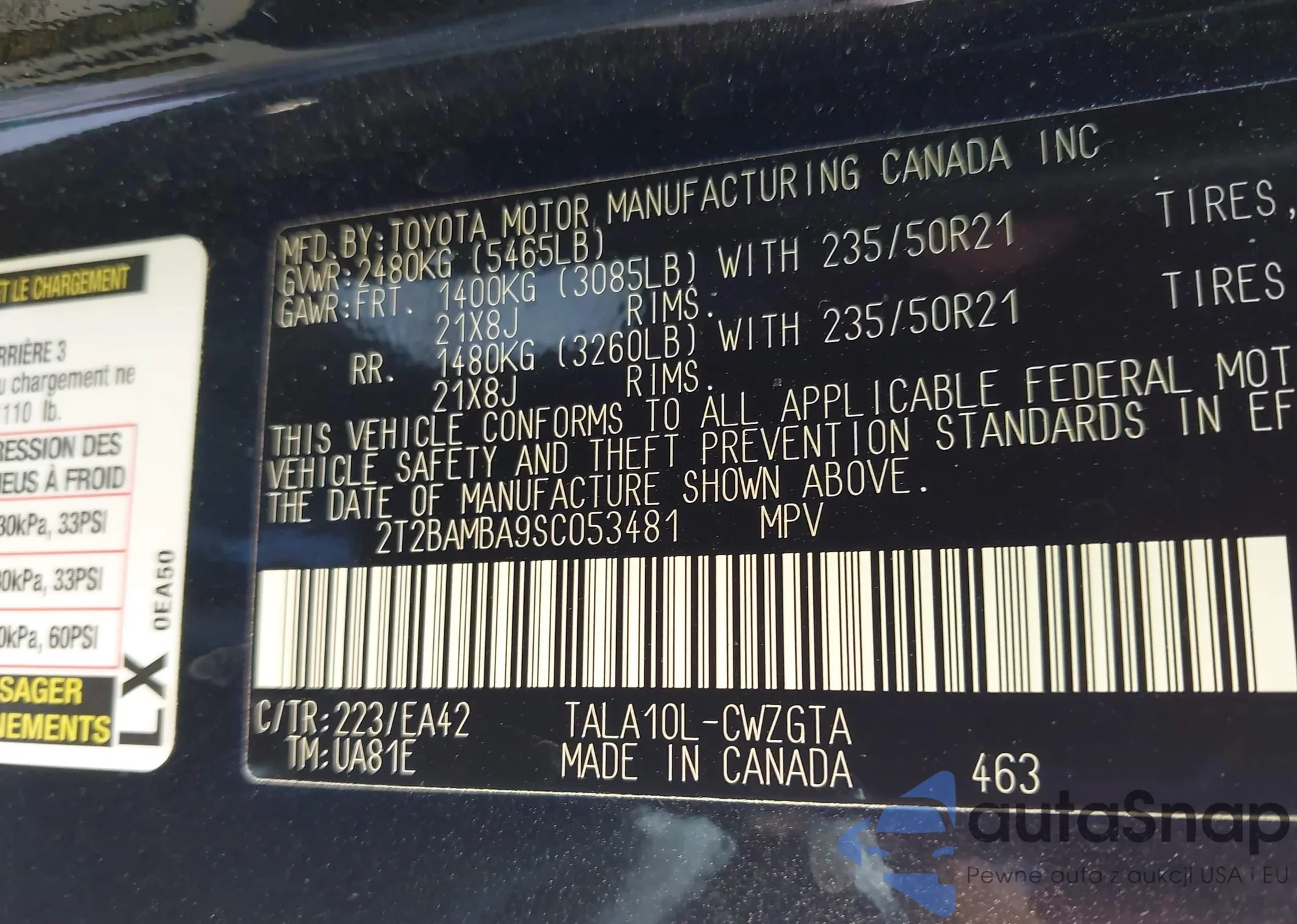 • VIN: 2T2BAMBA9SC053481