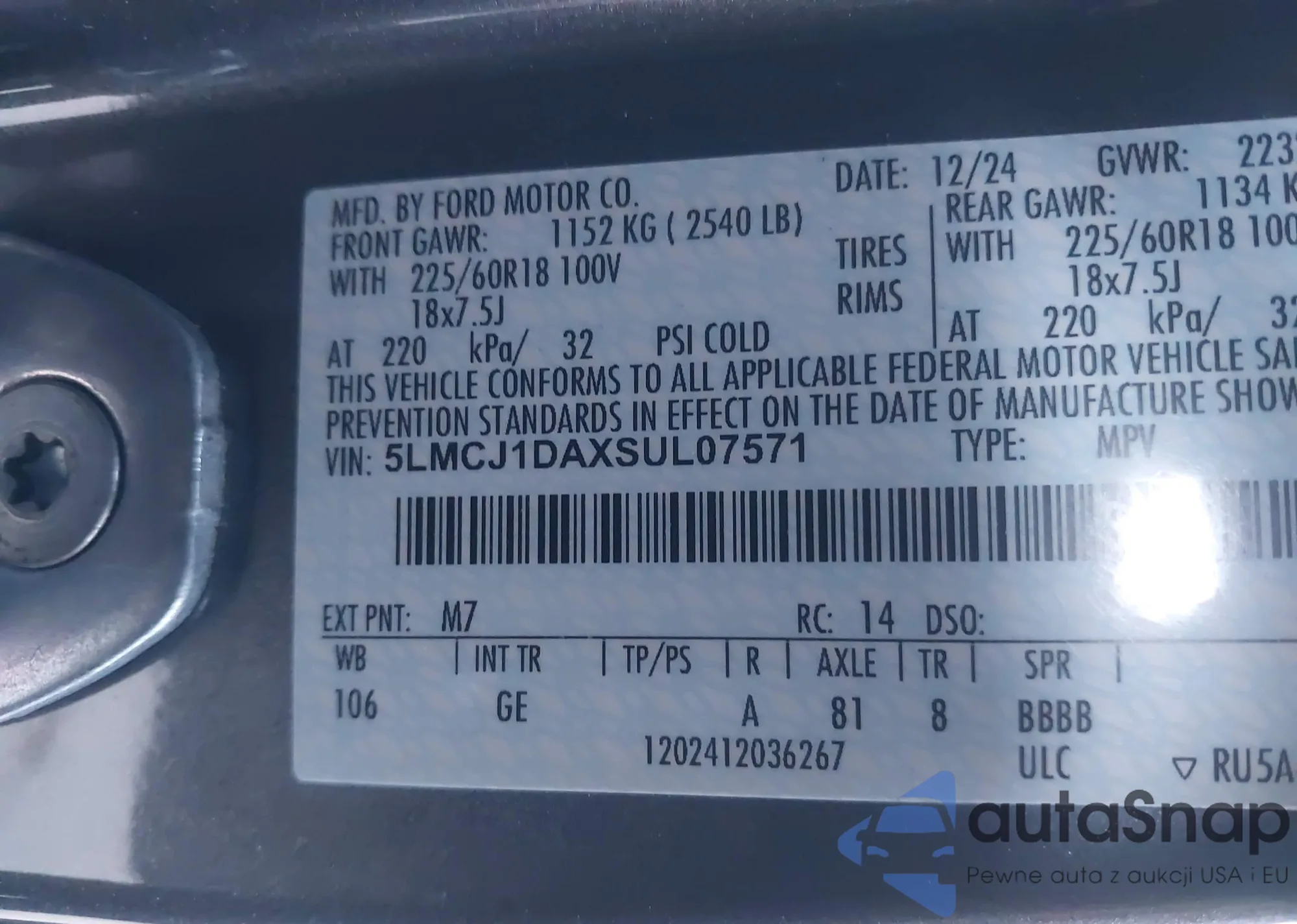 • VIN: 5LMCJ1DAXSUL07571