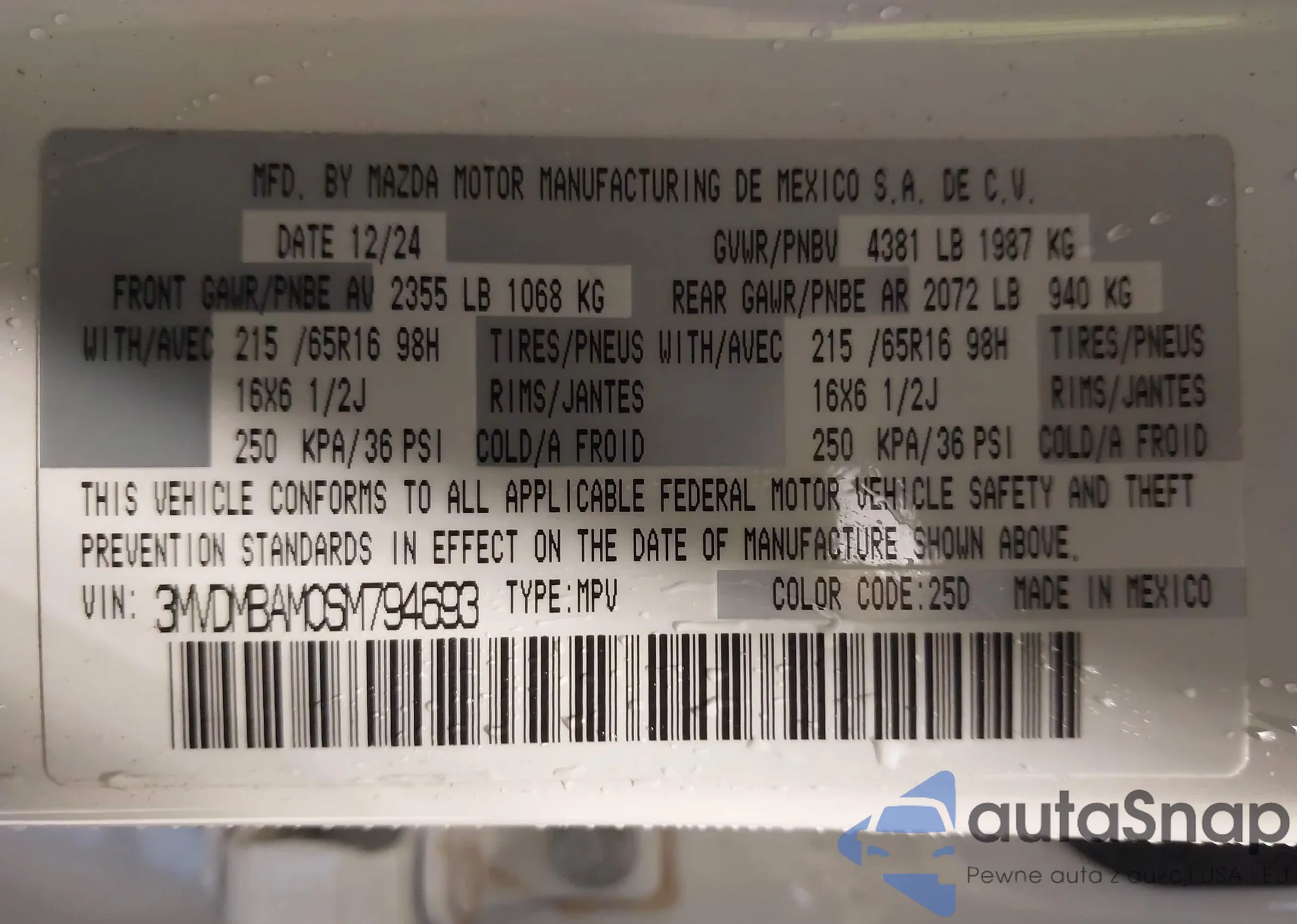 VIN: 3MVDMBAM0SM794693