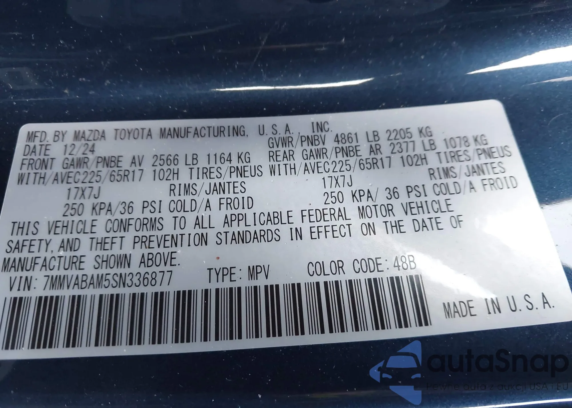Автомобиль Mazda CX-50 2025 (VIN 7MMVABAM5SN336877) ранее не участвовал в торгах. Документы чистые, пробег соответствует или ниже среднего по рынку. Продаётся страховой компанией — рекомендуем покупку. Доставка в порт займет около 6–8 недель.
