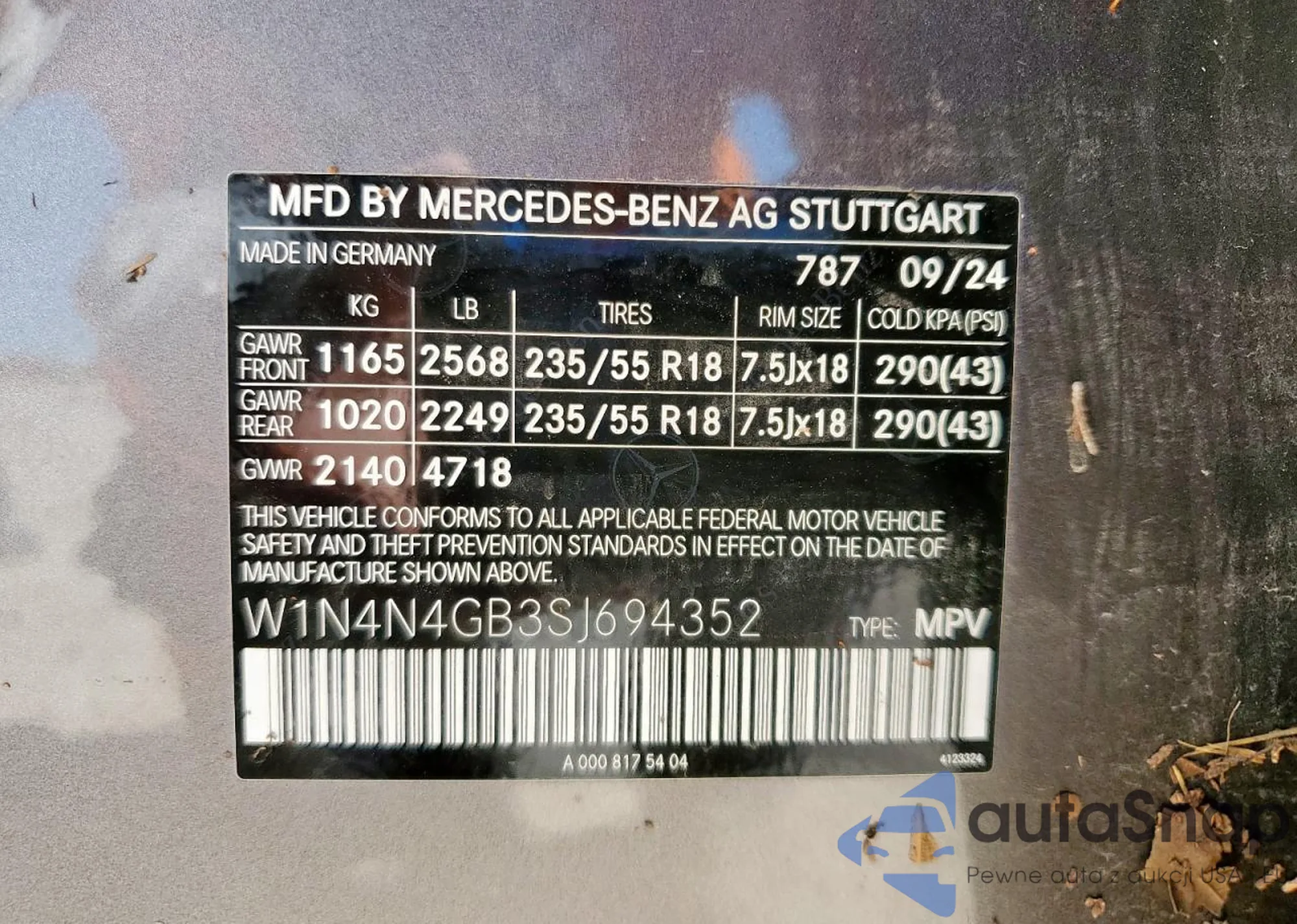 VIN: W1N4N4GB3SJ694352