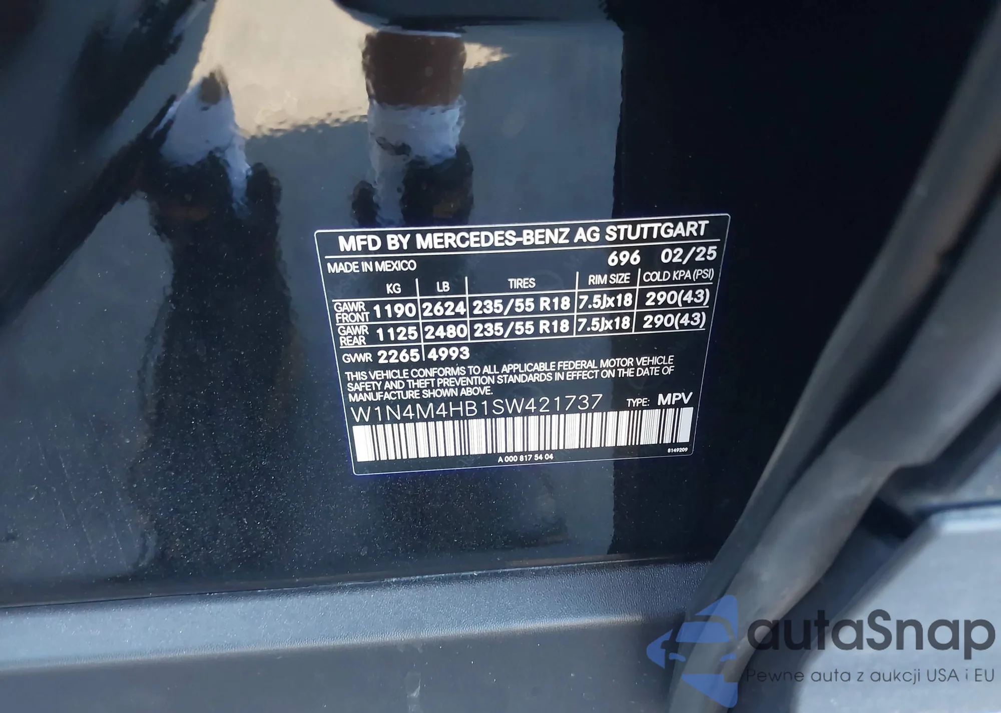 • VIN: W1N4M4HB1SW421737