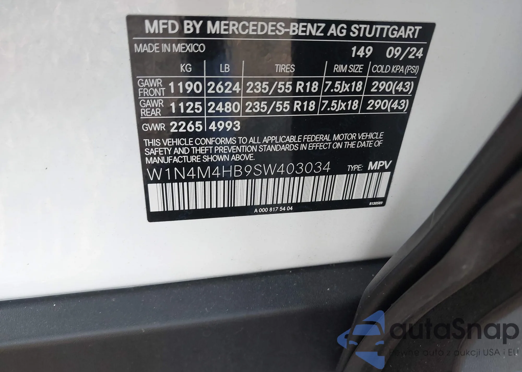 VIN: W1N4M4HB9SW403034
