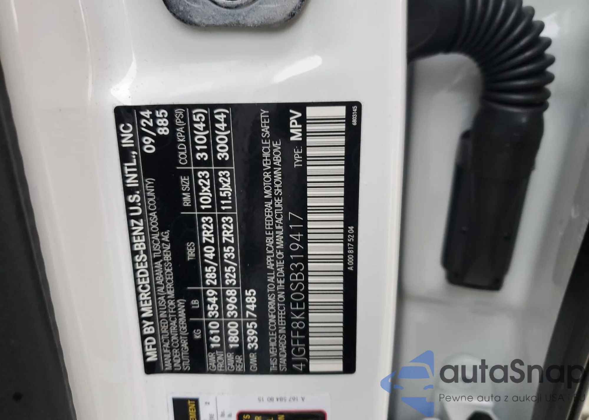 VIN: 4JGFF8KE0SB319417