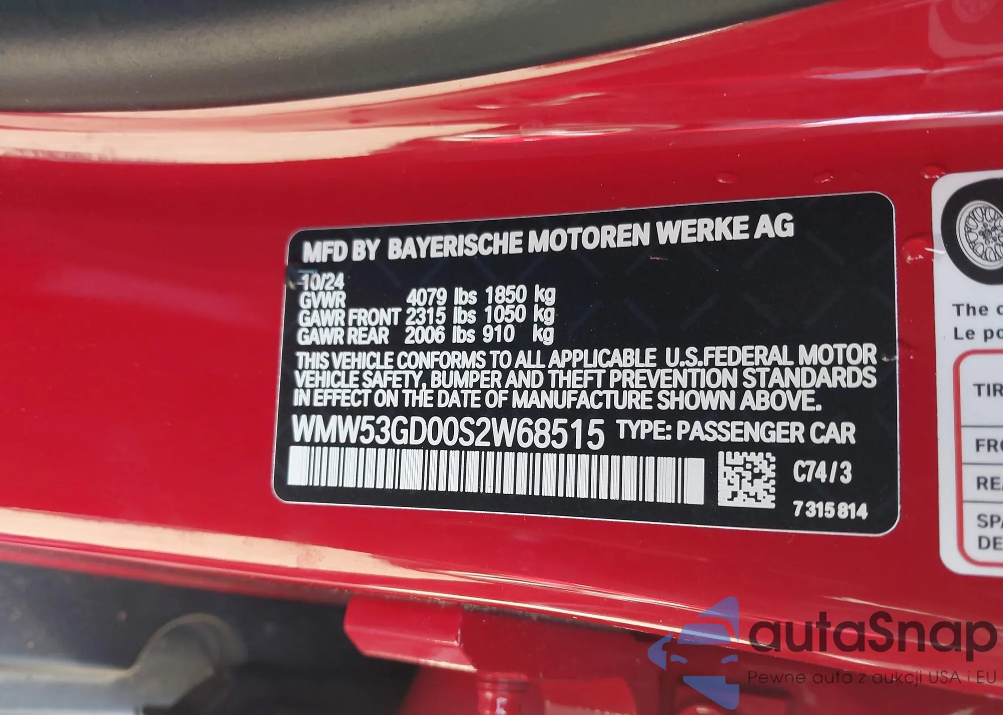 • VIN: WMW53GD00S2W68515