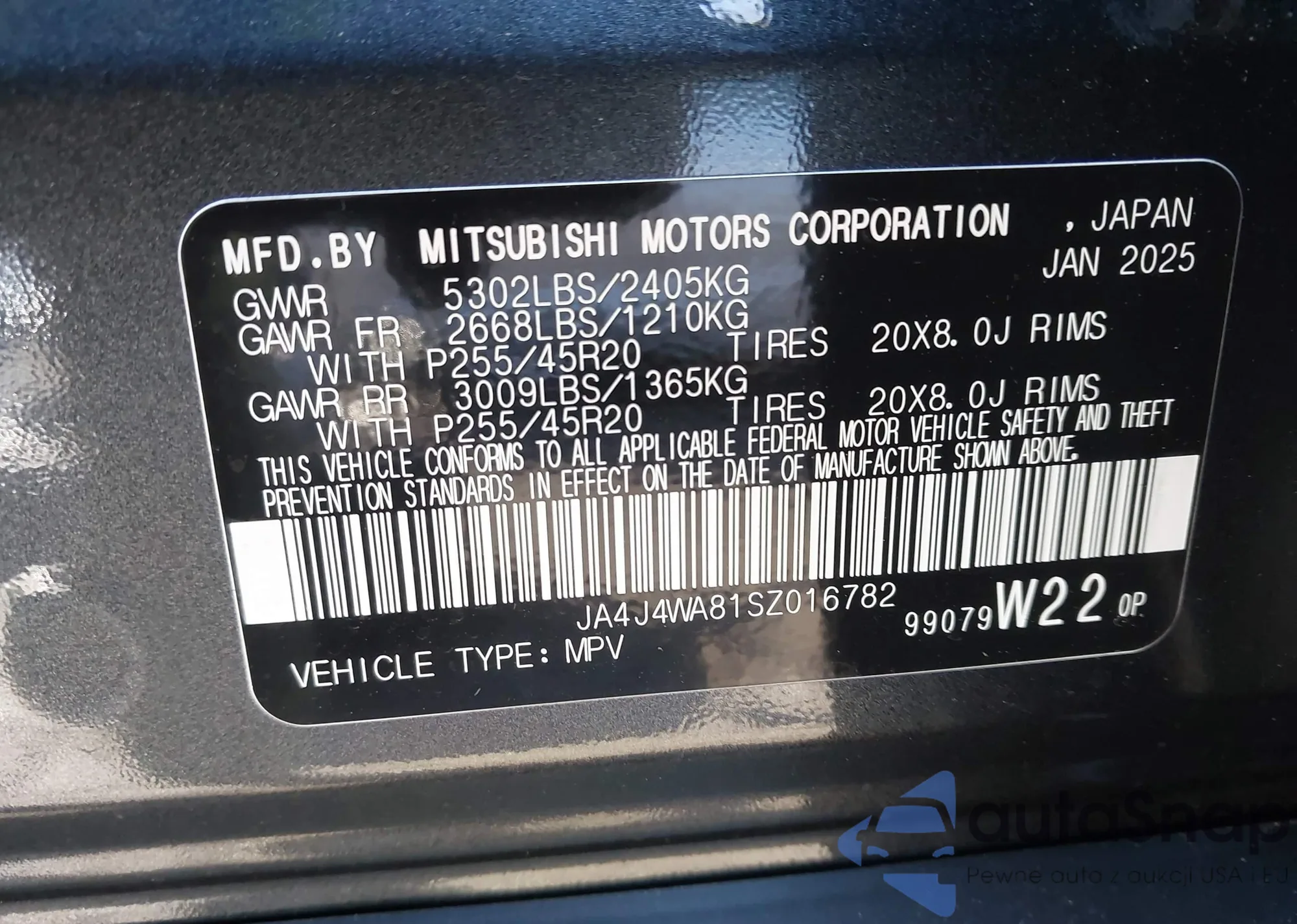 Автомобиль Mitsubishi Outlander 2025 (VIN JA4J4WA81SZ016782) ранее не участвовал в торгах. Документы чистые, пробег соответствует или ниже среднего по рынку. Продаётся страховой компанией — рекомендуем покупку. Доставка в порт займет около 6–8 недель.
