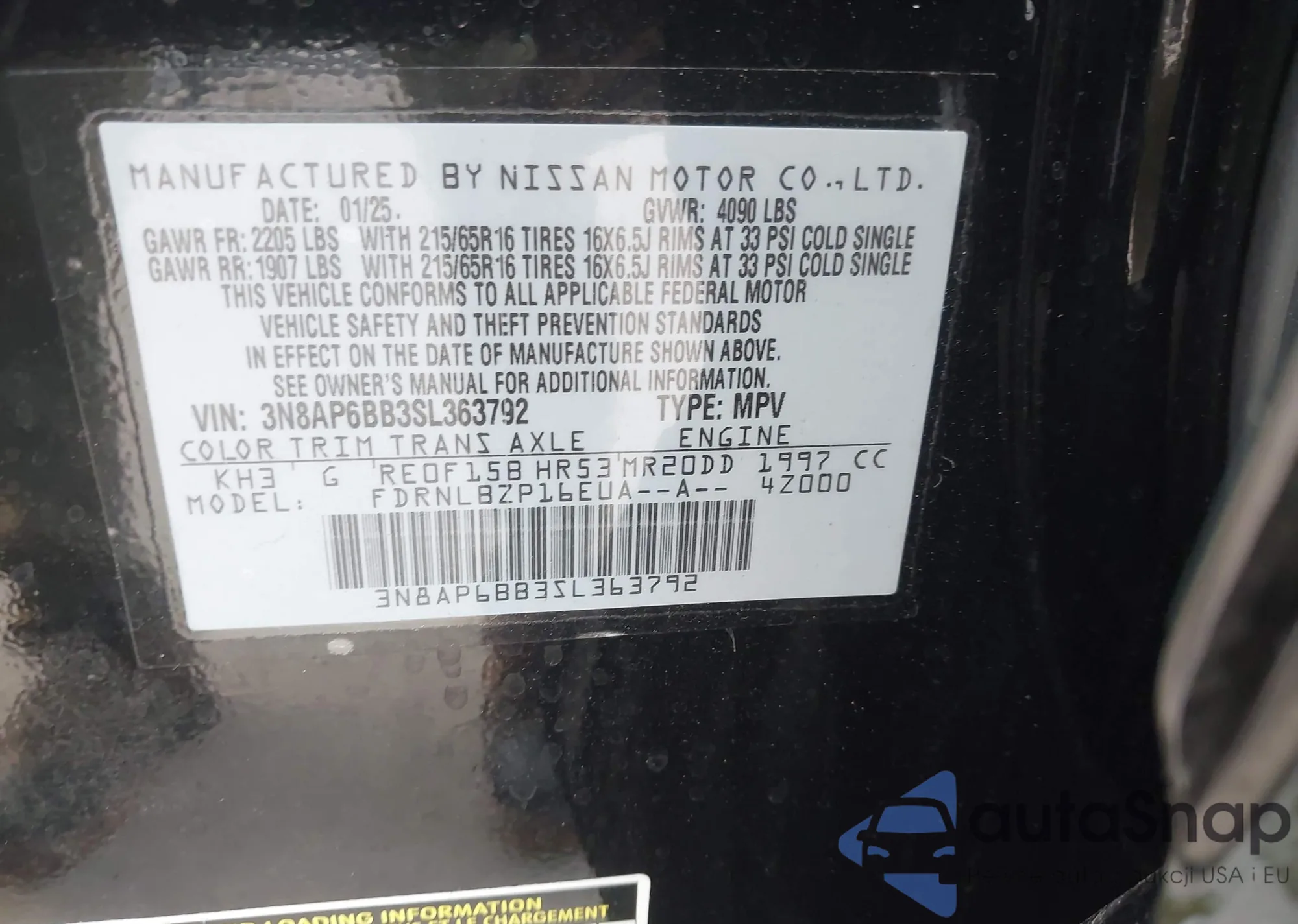 VIN: 3N8AP6BB3SL363792