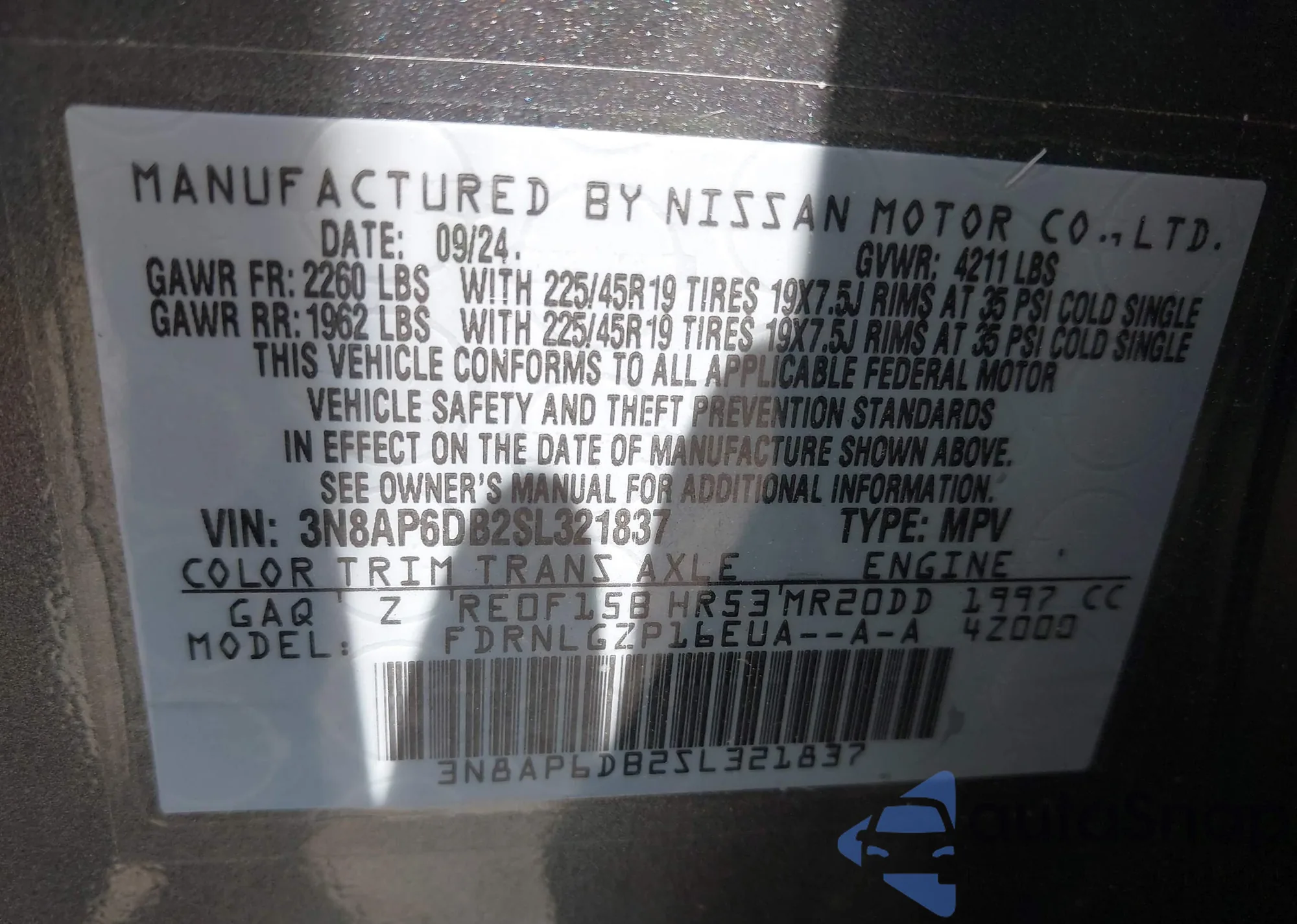 VIN: 3N8AP6DB2SL321837