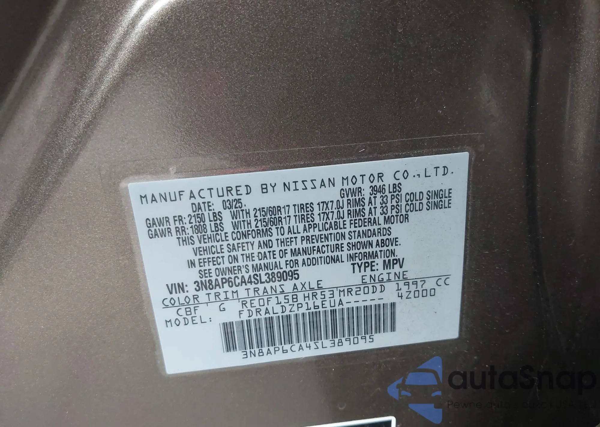 Автомобиль Nissan Kicks 2025 (VIN 3N8AP6CA4SL389095) ранее не участвовал в торгах. Документы чистые, пробег соответствует или ниже среднего по рынку. Продаётся страховой компанией — рекомендуем покупку. Доставка в порт займет около 6–8 недель.