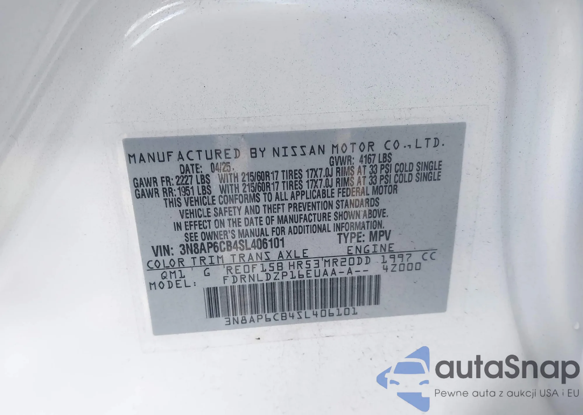 Автомобиль Nissan Kicks 2025 (VIN 3N8AP6CB4SL406101) ранее не участвовал в торгах. Документы чистые, пробег соответствует или ниже среднего по рынку. Продаётся страховой компанией — рекомендуем покупку. Доставка в порт займет около 6–8 недель.