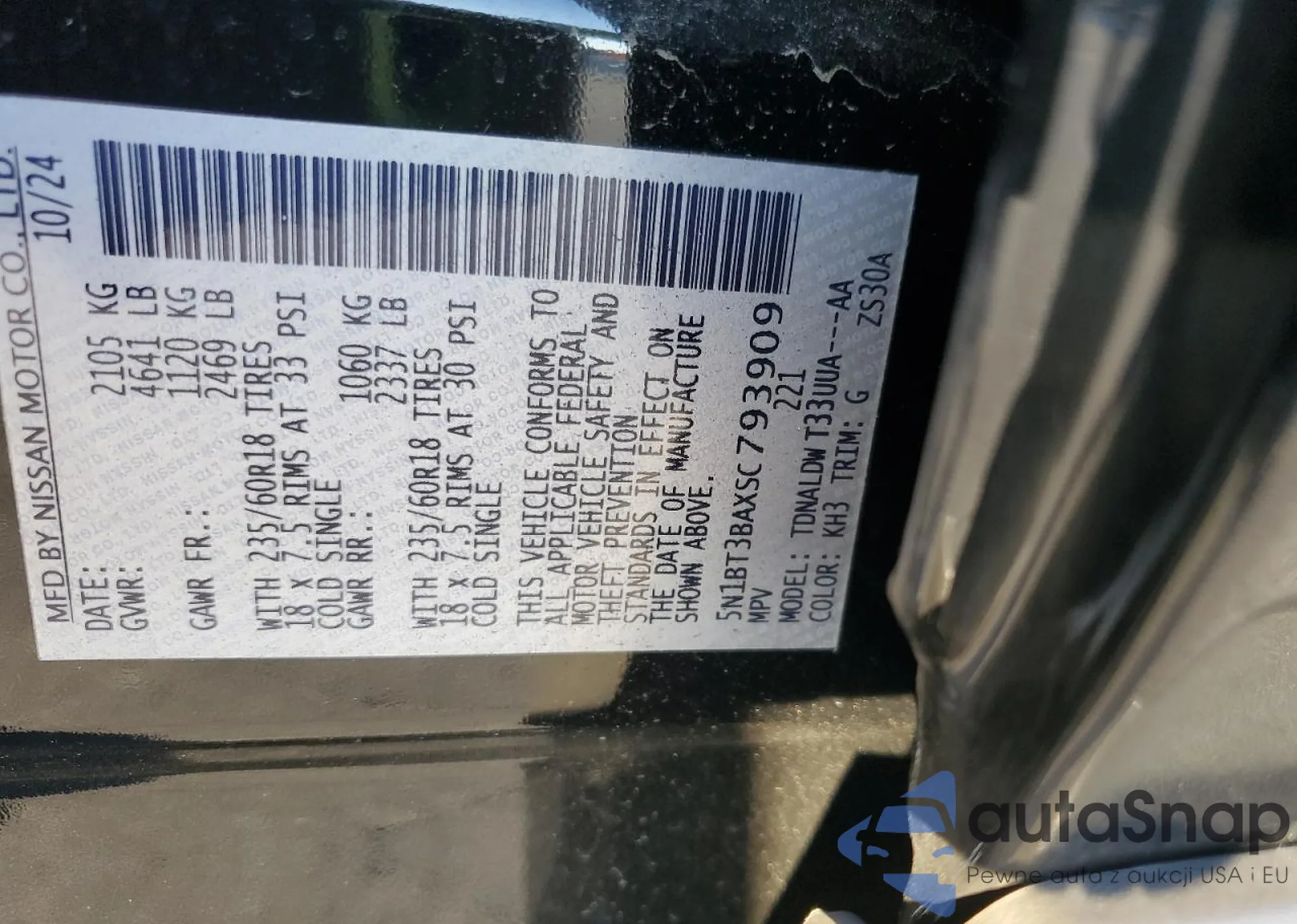 VIN: 5N1BT3BAXSC793909