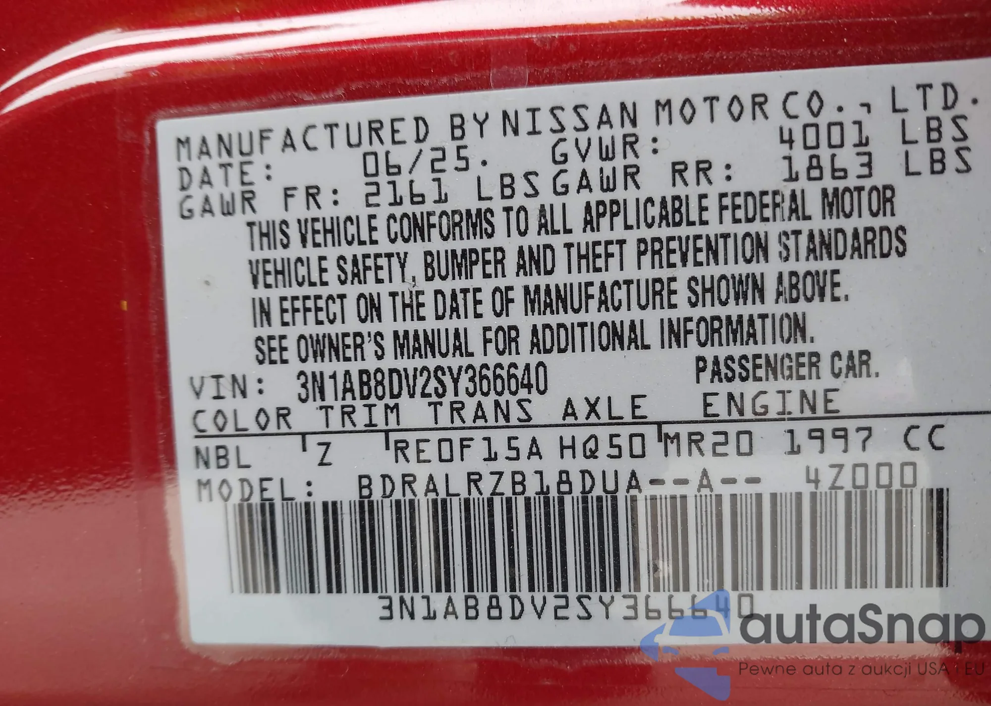 VIN: 3N1AB8DV2SY366640