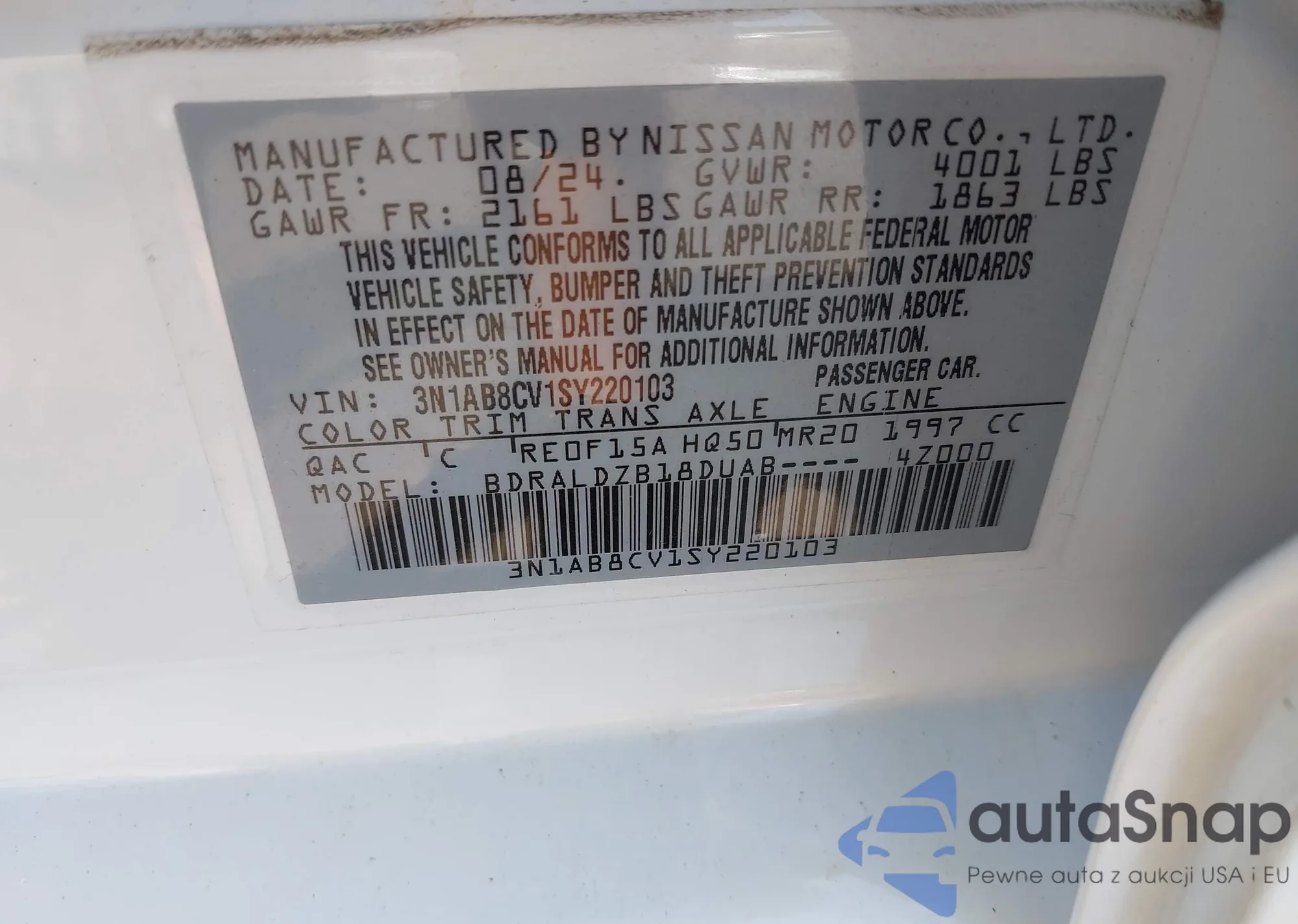 VIN: 3N1AB8CV1SY220103