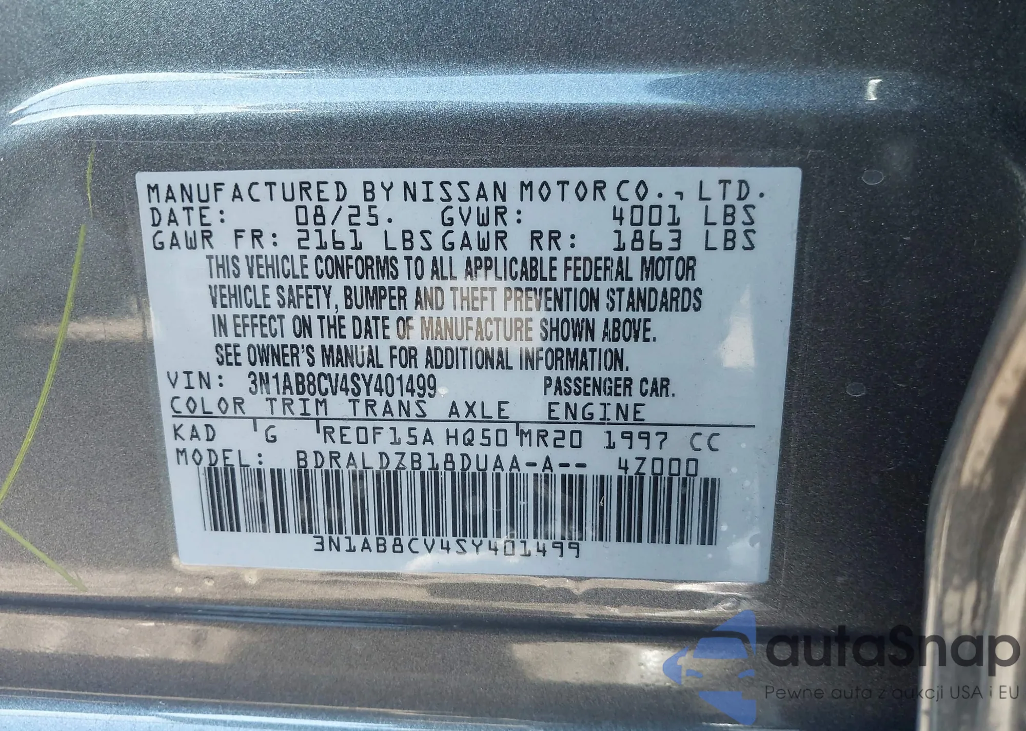 VIN: 3N1AB8CV4SY401499