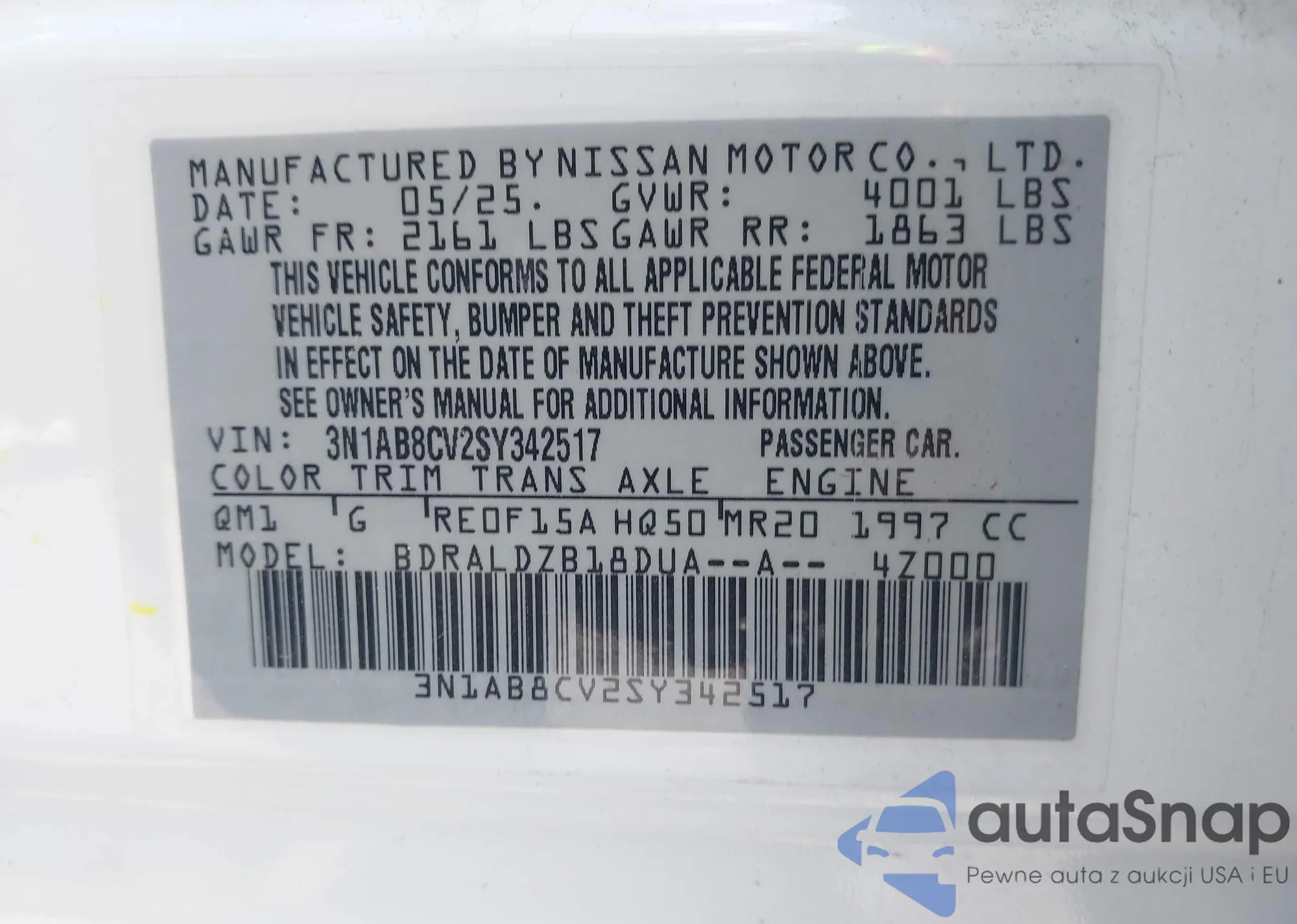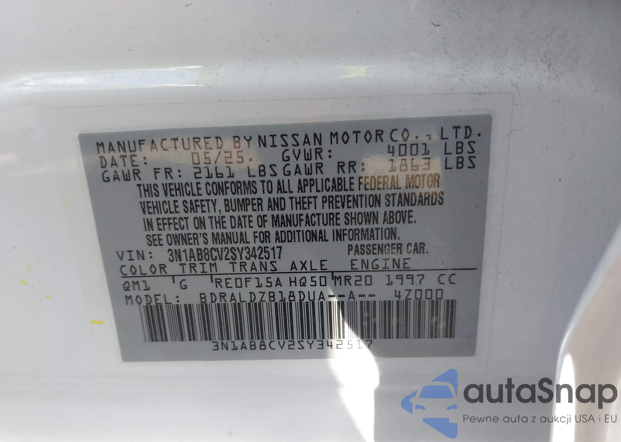 VIN: 3N1AB8CV2SY342517