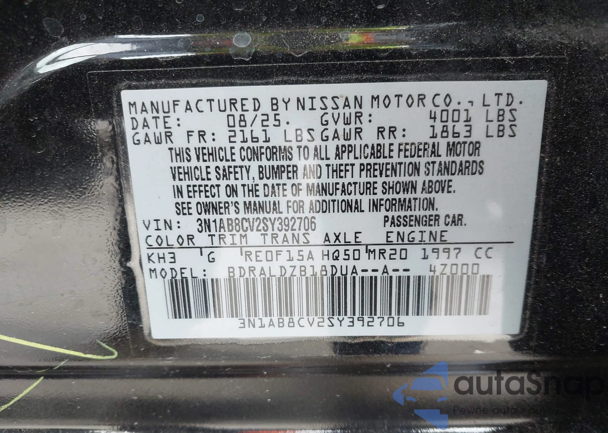 VIN: 3N1AB8CV2SY392706